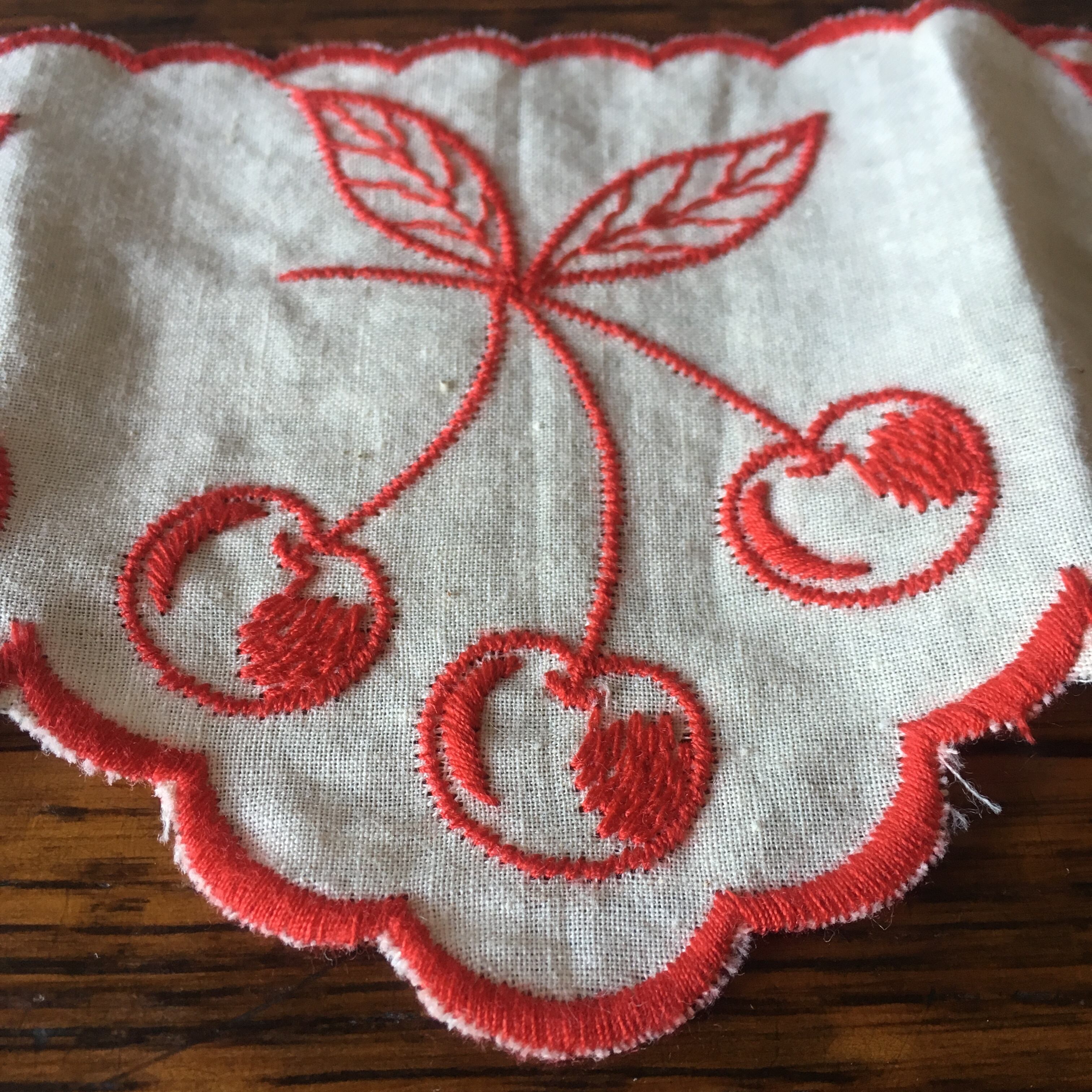 フランス ブロカント さくらんぼ 刺繍 ハンドメイド