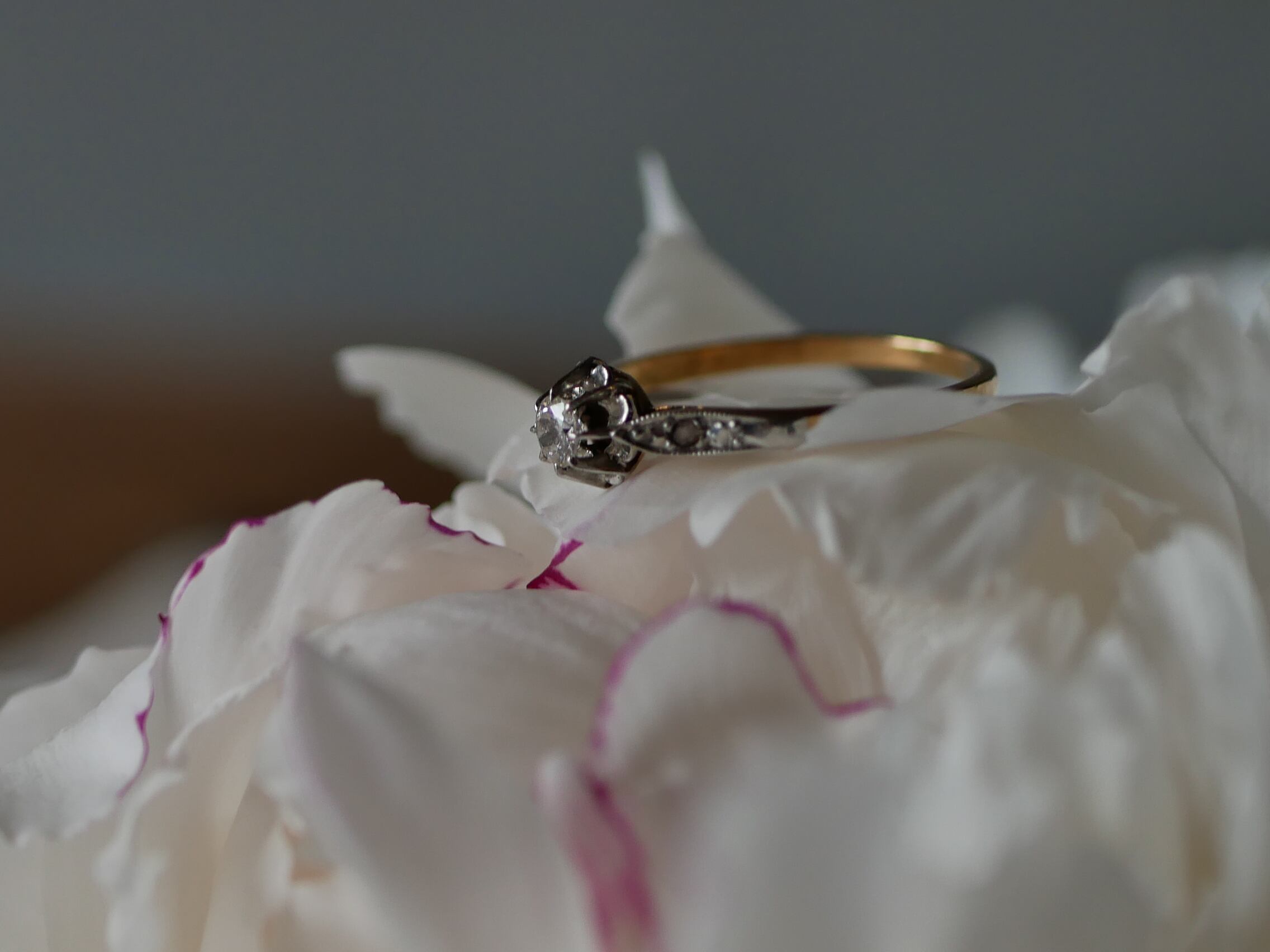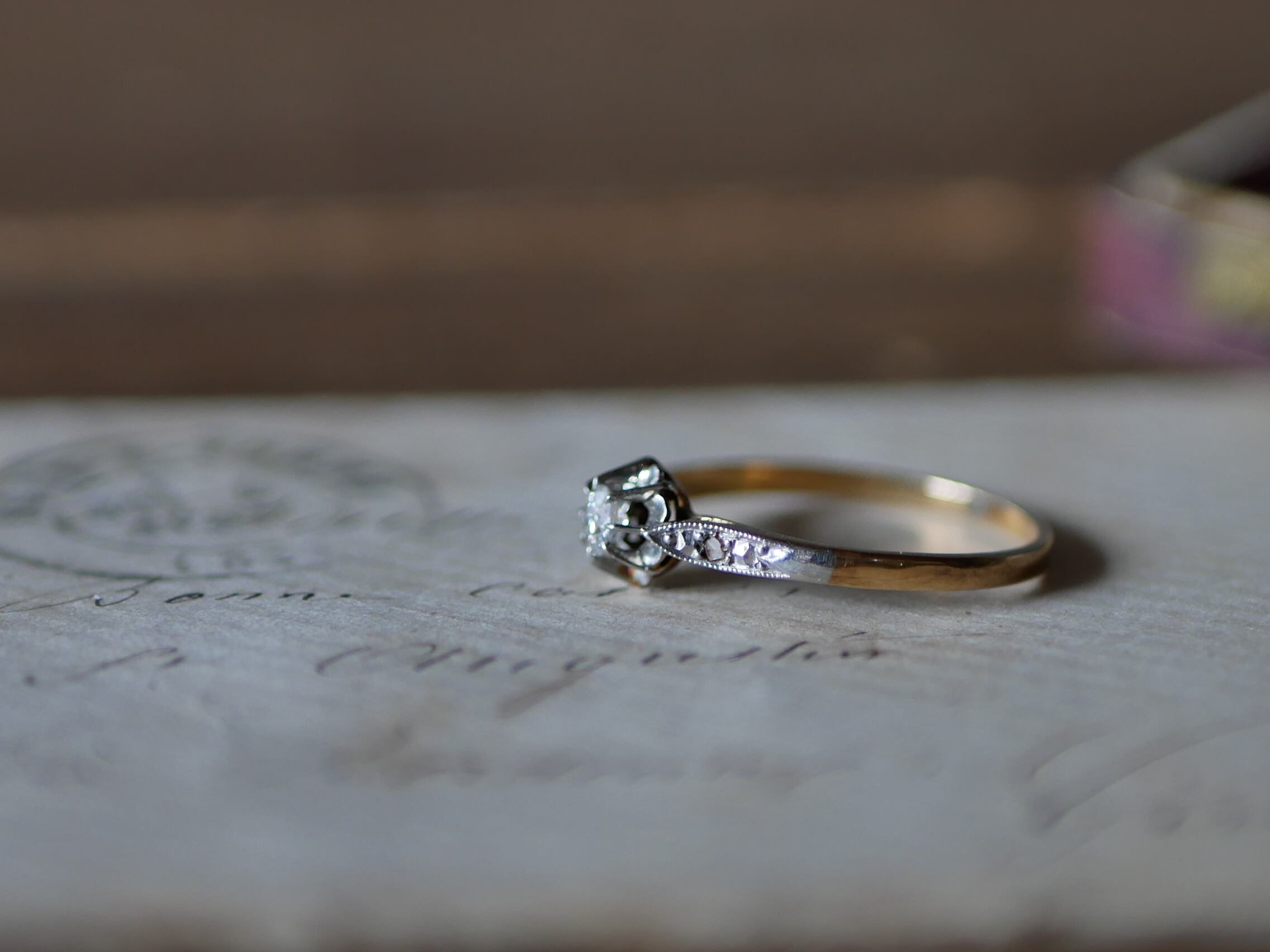 天然ダイヤモンドのアンティークリングになります。