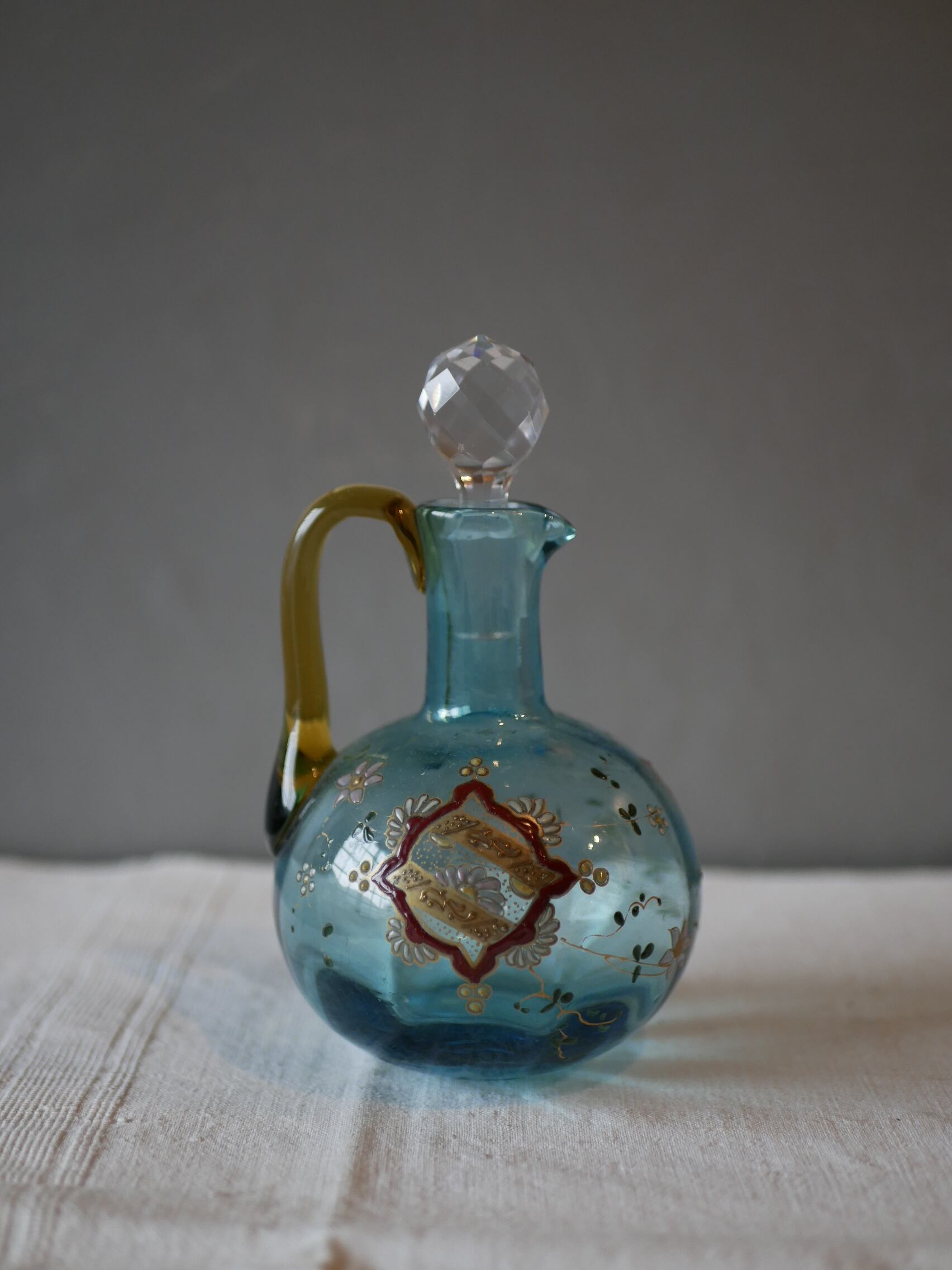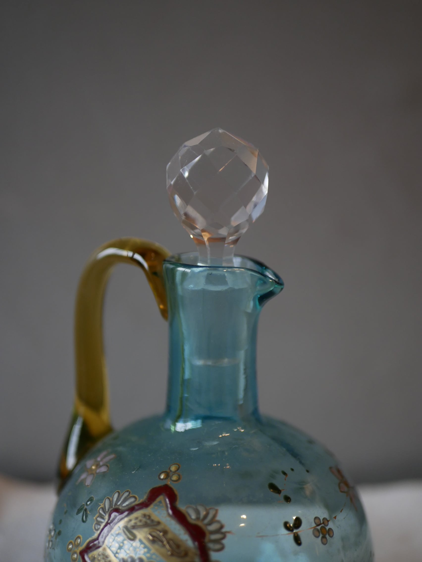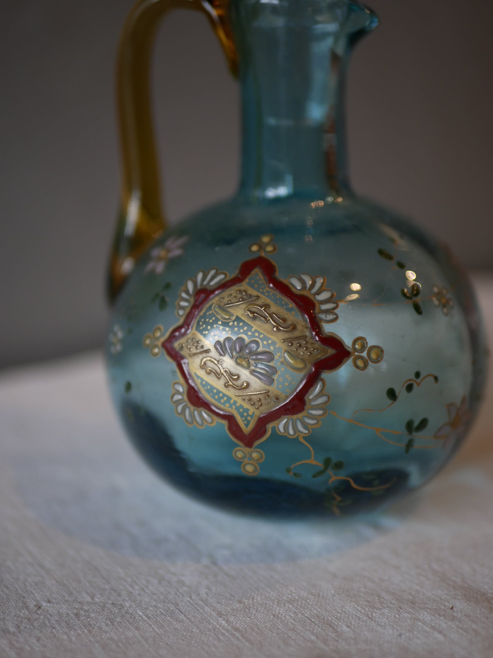 エナメル絵付け ブルーのピシェ カラフェ フランスアンティーク