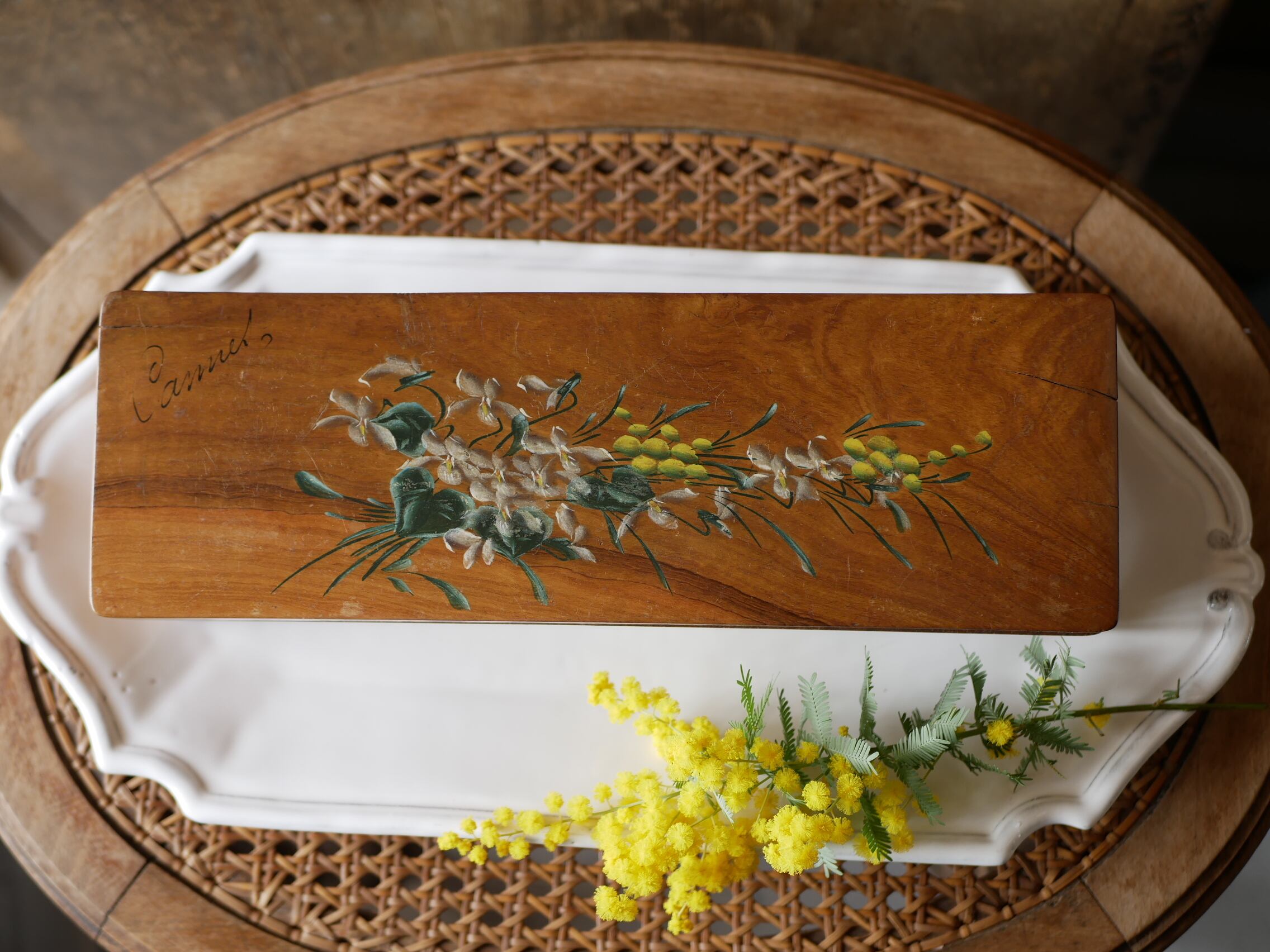 Cannnes シルククッション ミモザの木箱 フランスアンティーク ブロカント