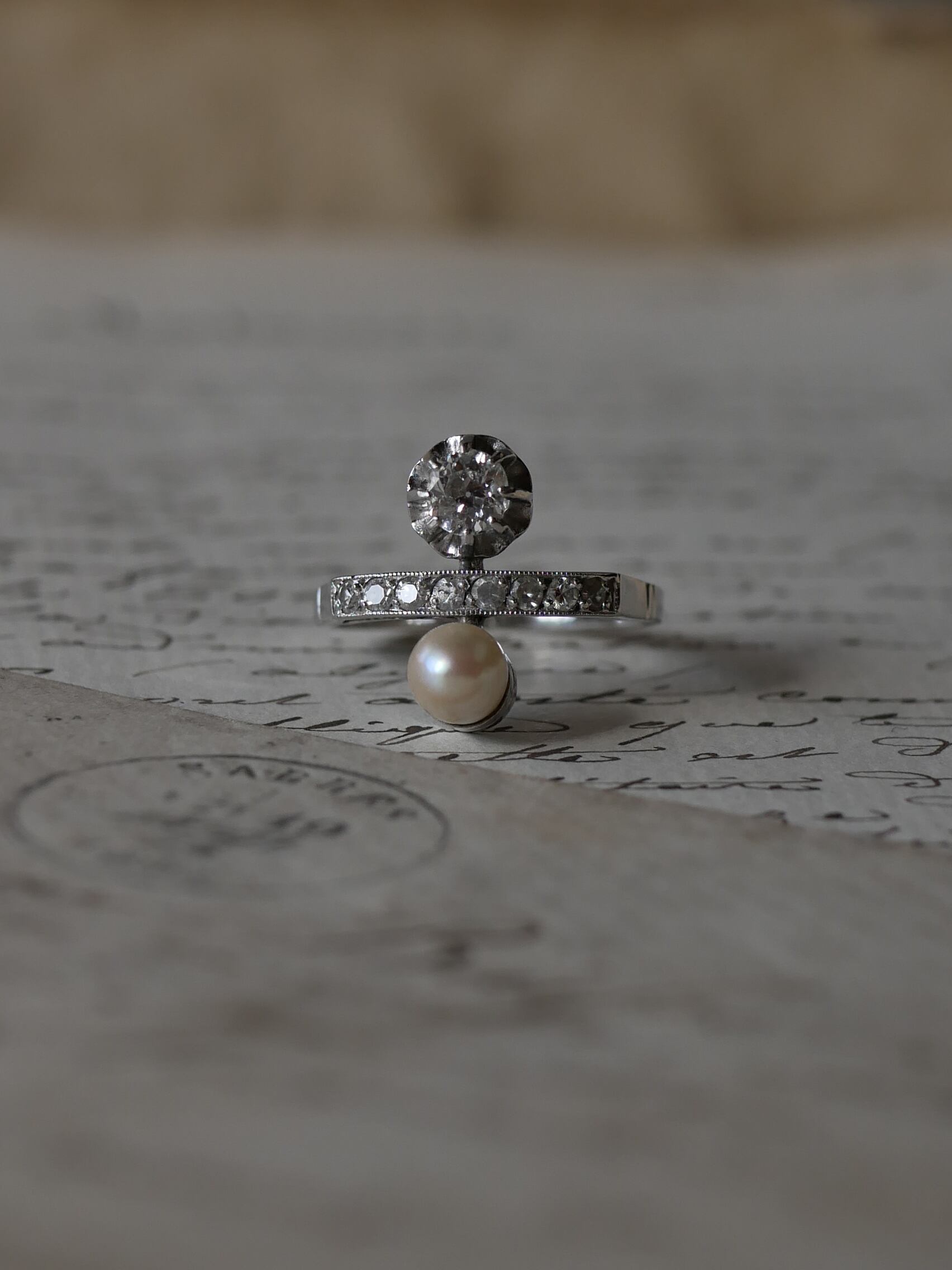 FR-31 アールデコ K18WG トワエモア 真珠&ダイヤモンド アンティークリング