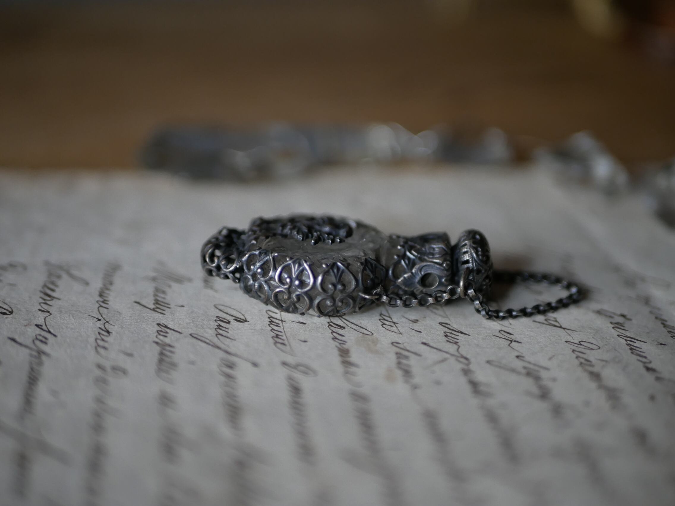 アザミの小さな香水瓶 シャトレーン フランスアンティーク ブロカント