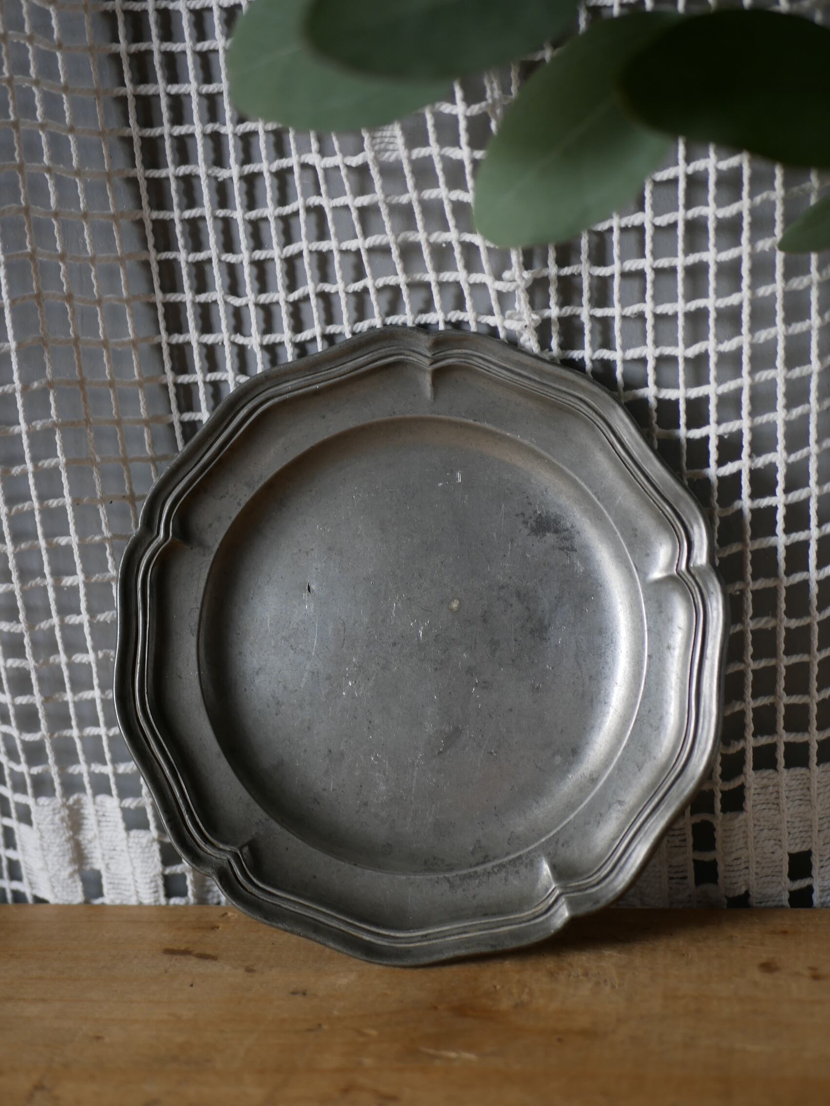 リムが花びらの形になった可愛さを持ち合わせたエタンまたはピューター製のプレートです。