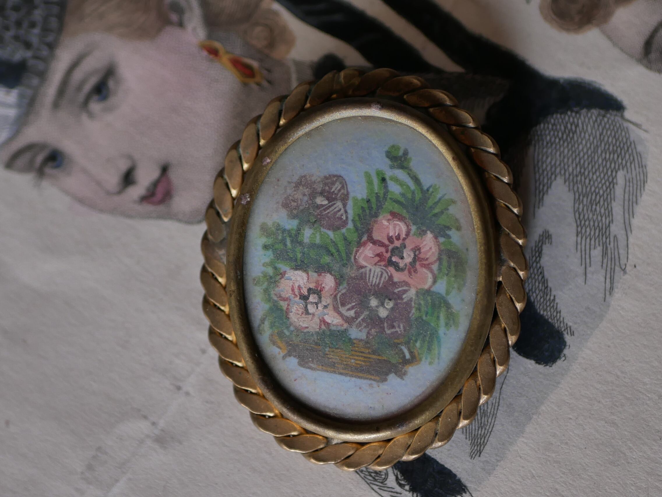 アネモネの絵がはめ込まれたアンティークブローチです。