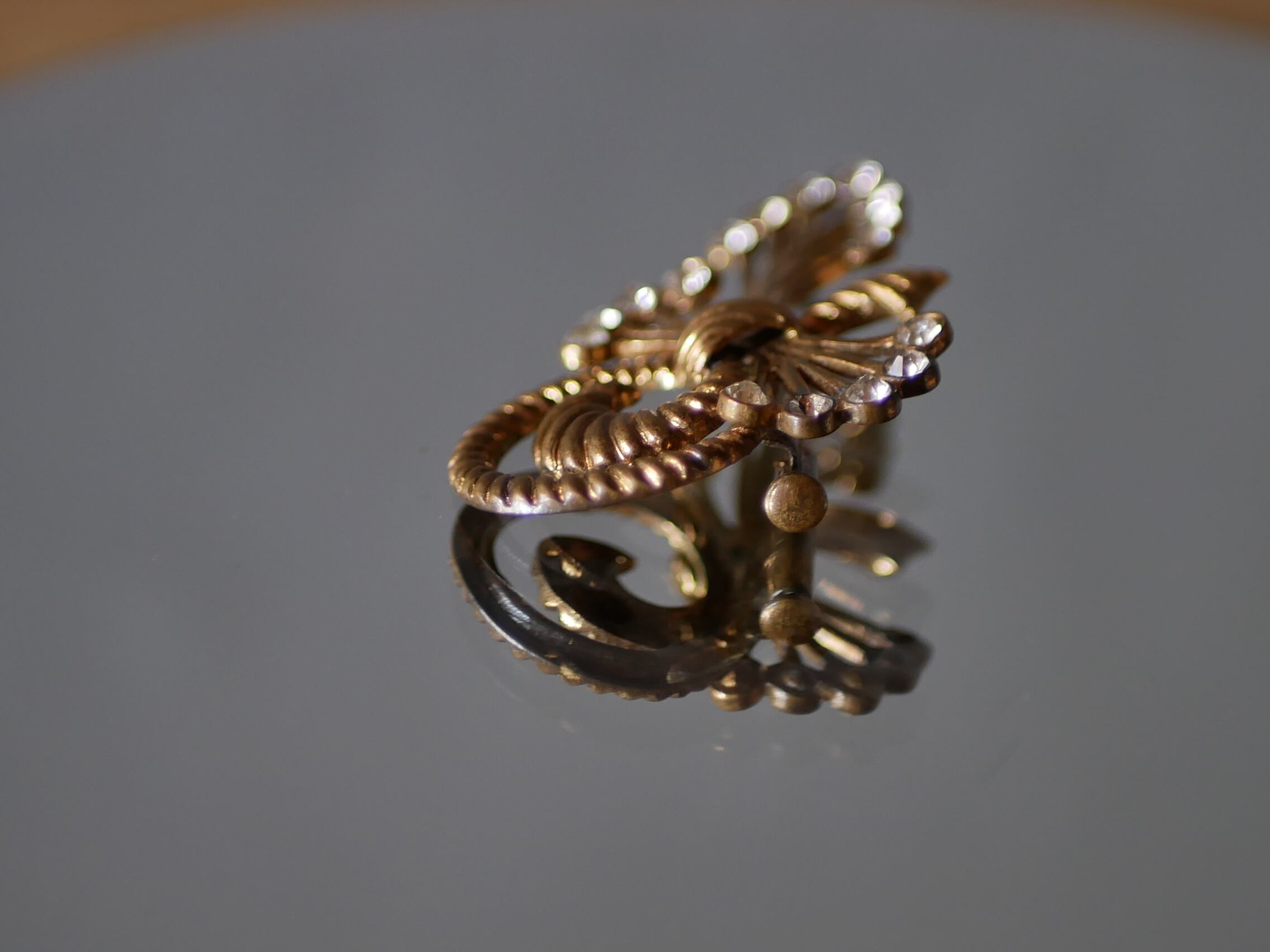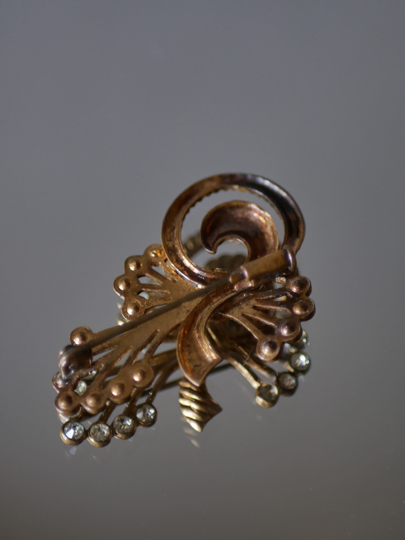 ゴールドカラー×ラインストーン アンティークブローチ フランスアンティーク