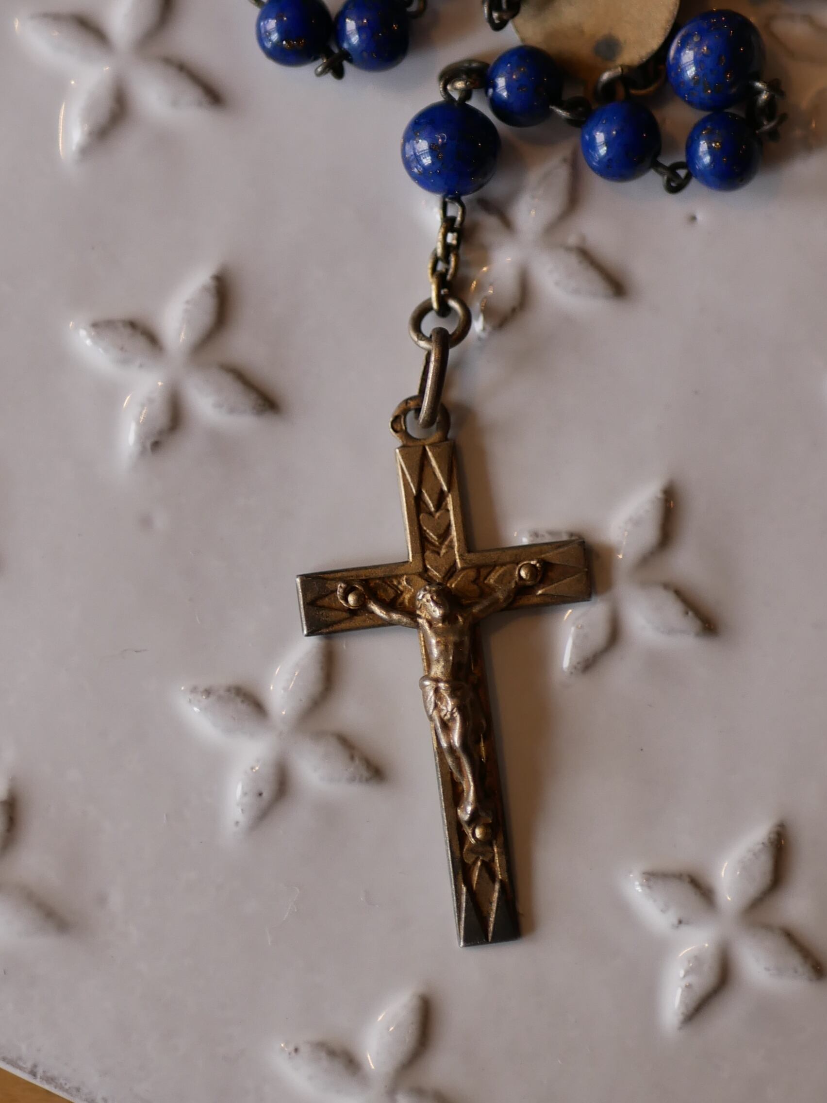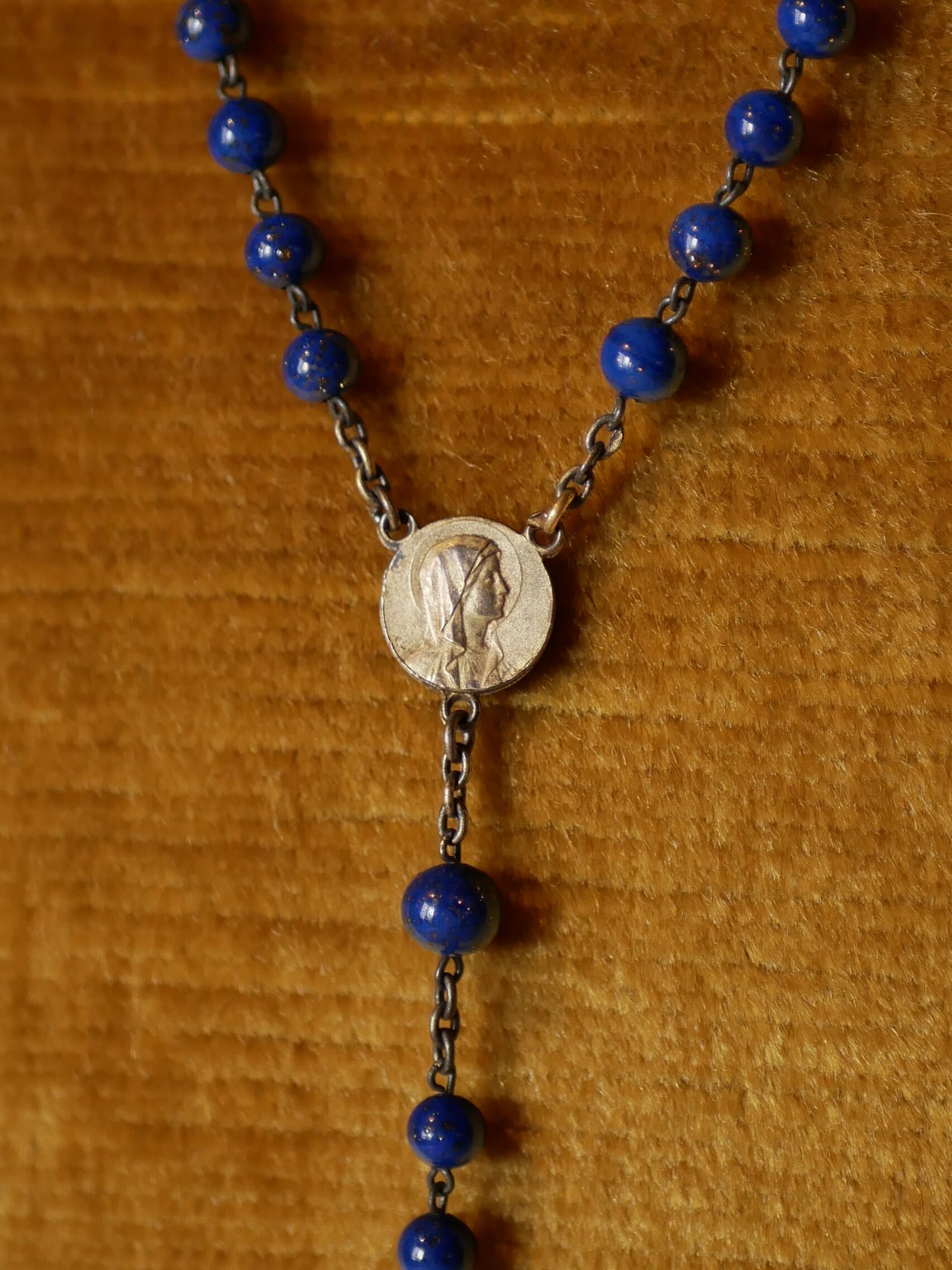 ラピスラズリ (青・BLEU) のロザリオ 純銀 フランスアンティーク 十字架 ブロカント アンティークのある暮らし