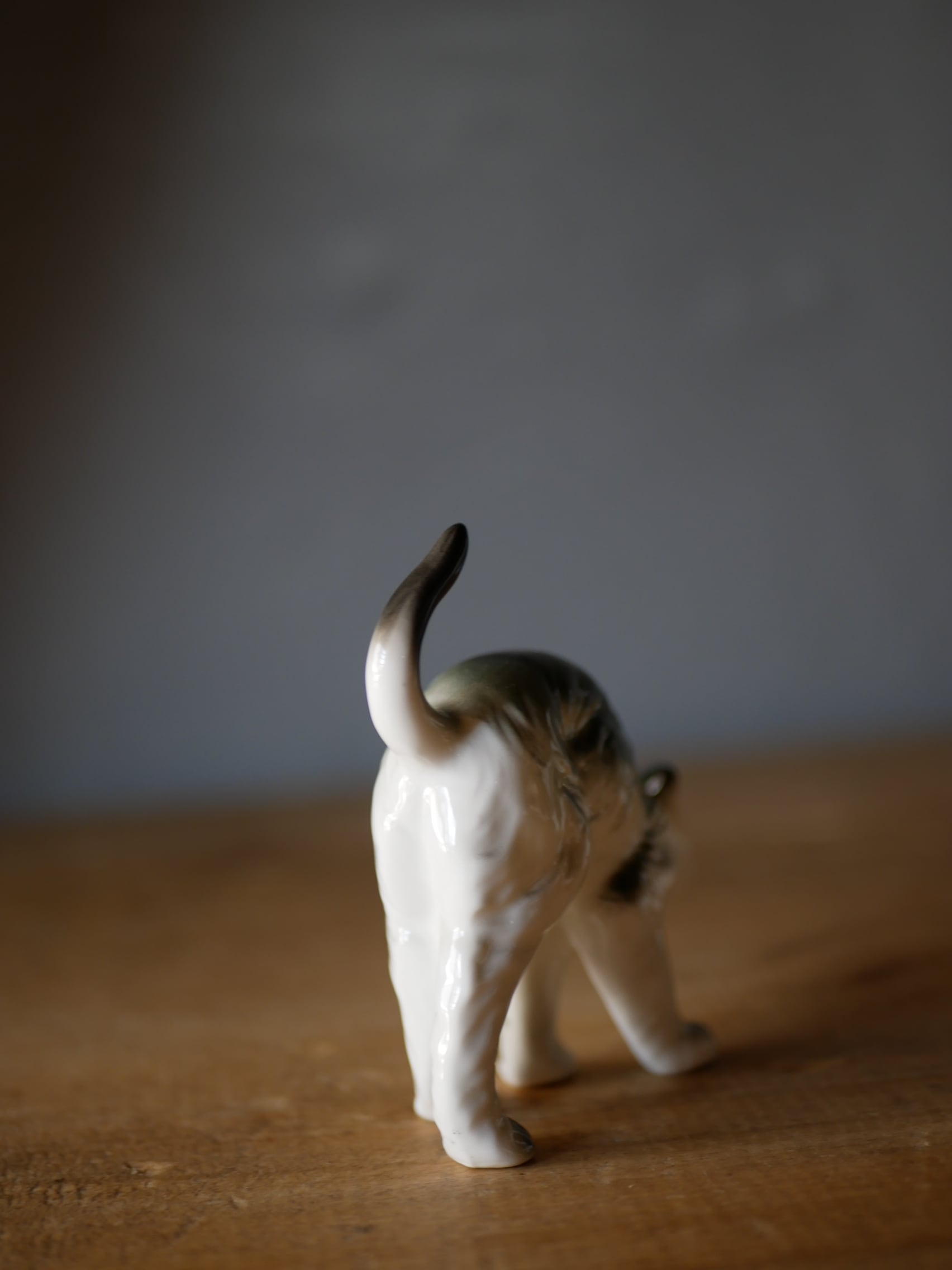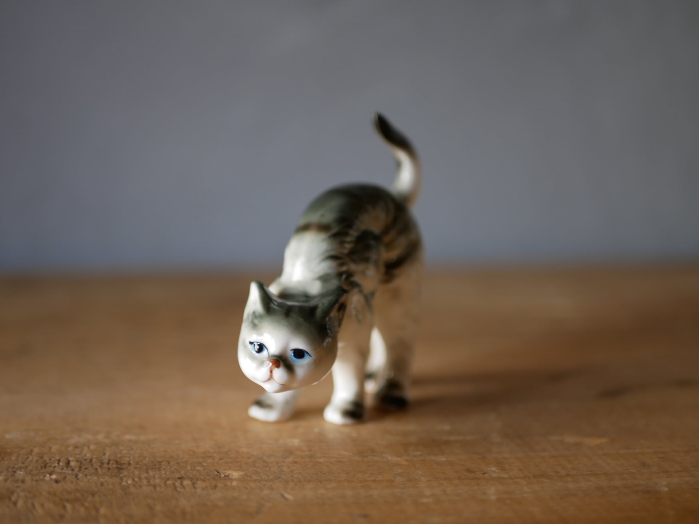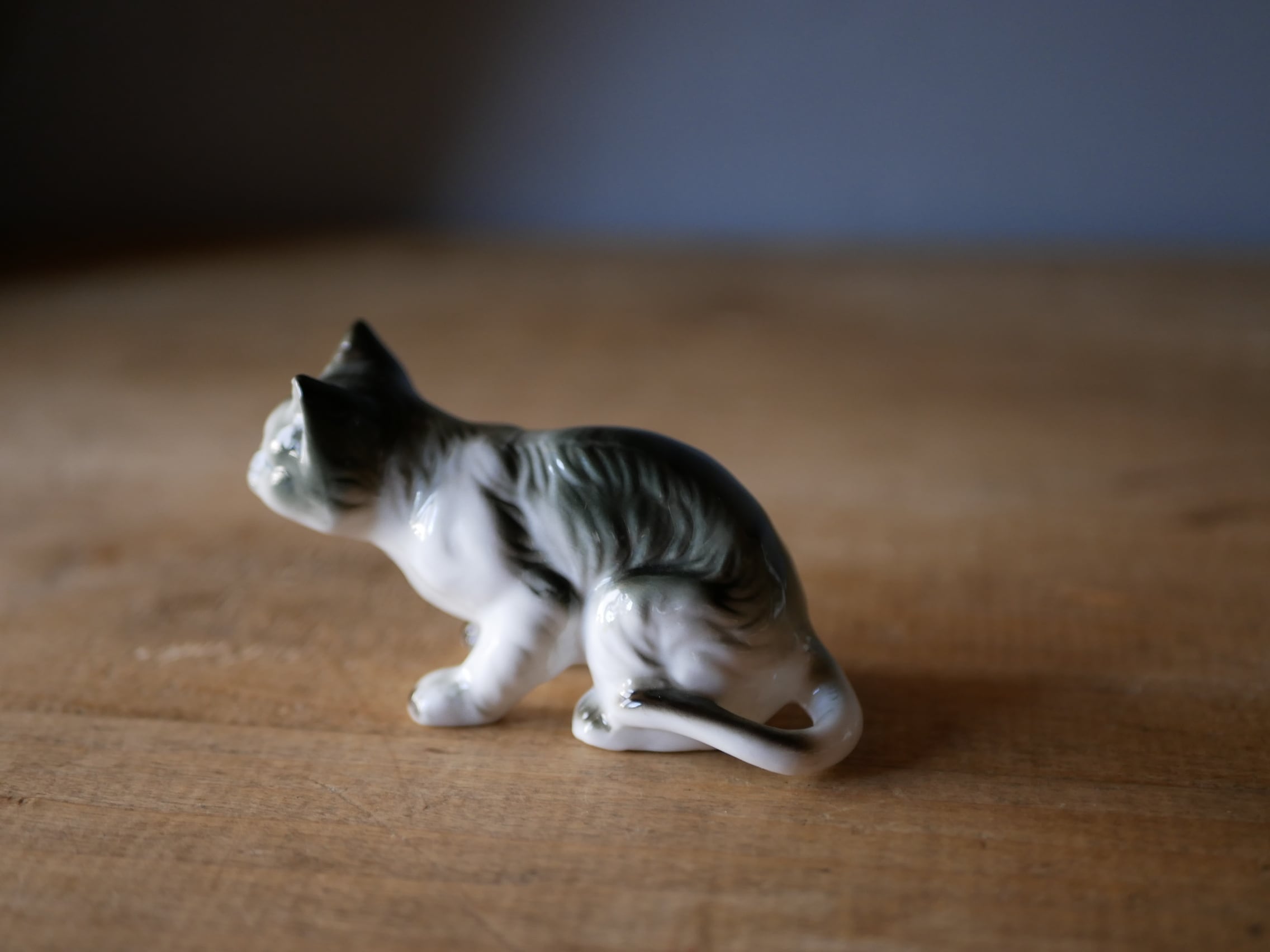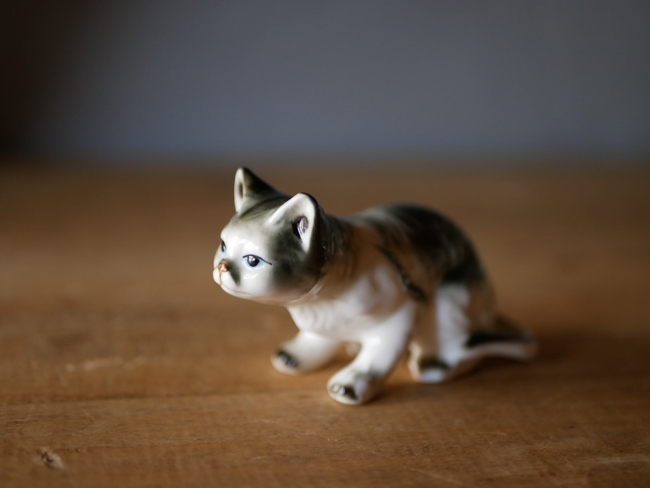 ダークグリーン 陶器の猫 フランスヴィンテージ ブロカント