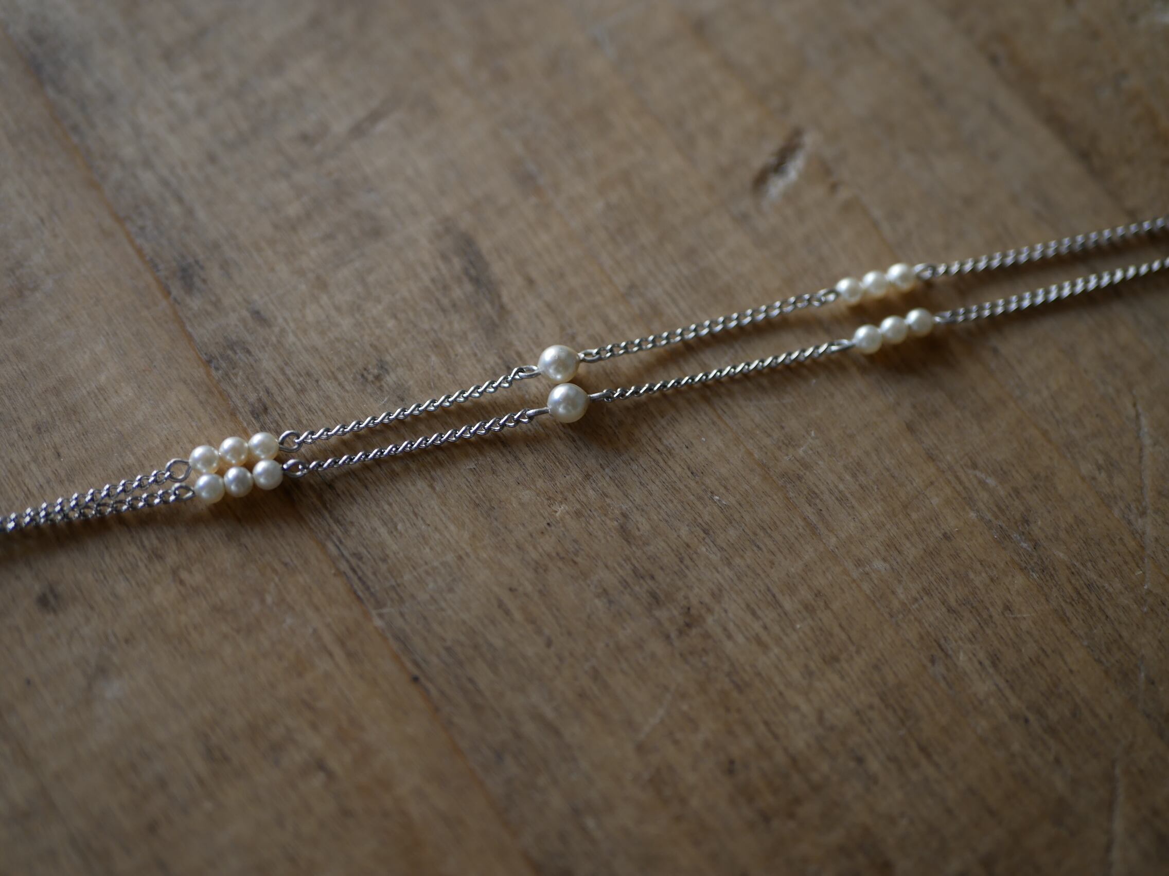 チェーンは固定されていて、小さなパールが綺麗に並んでいます。
