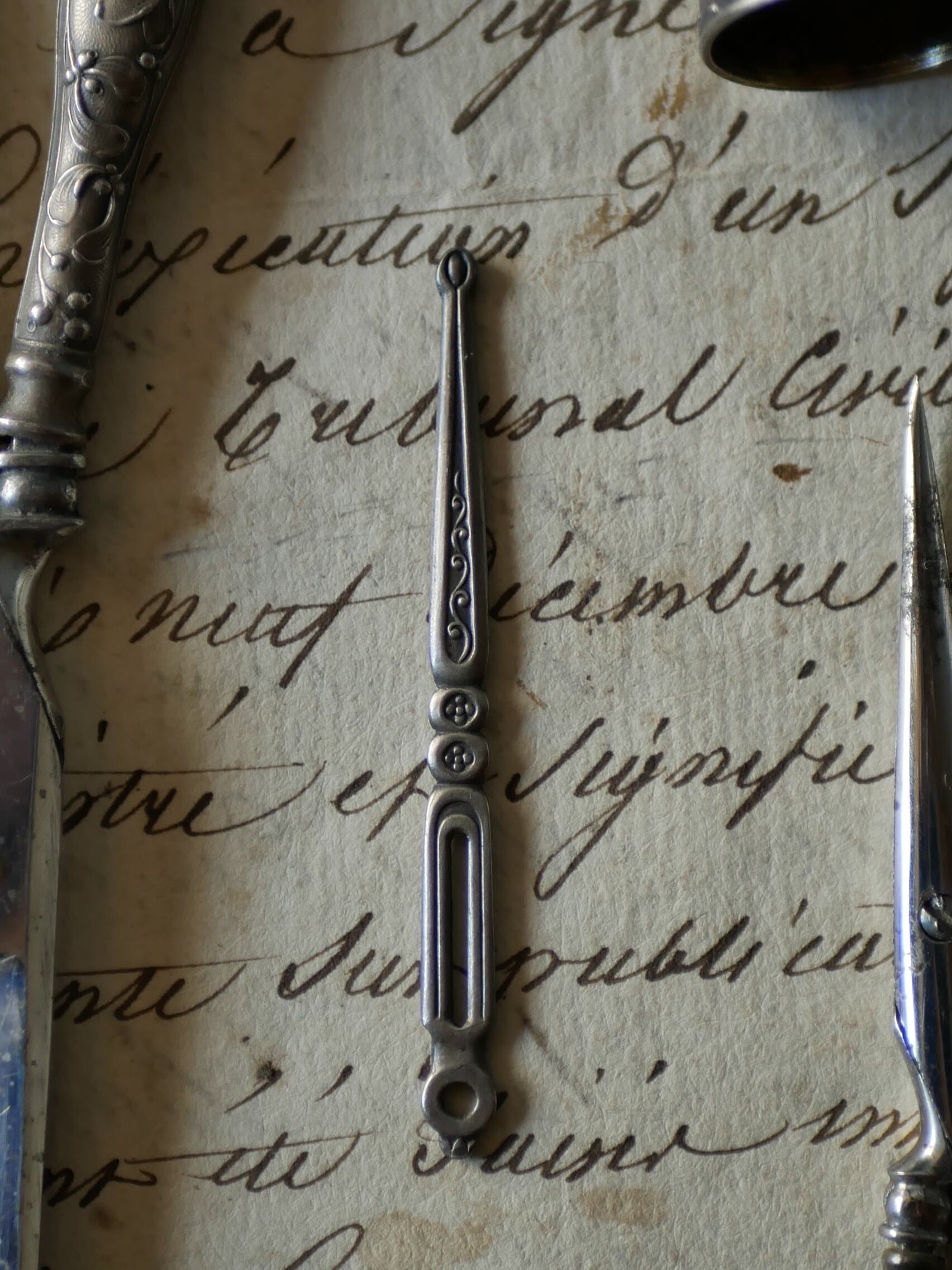 小さい糸切ハサミは少しクセがついています。