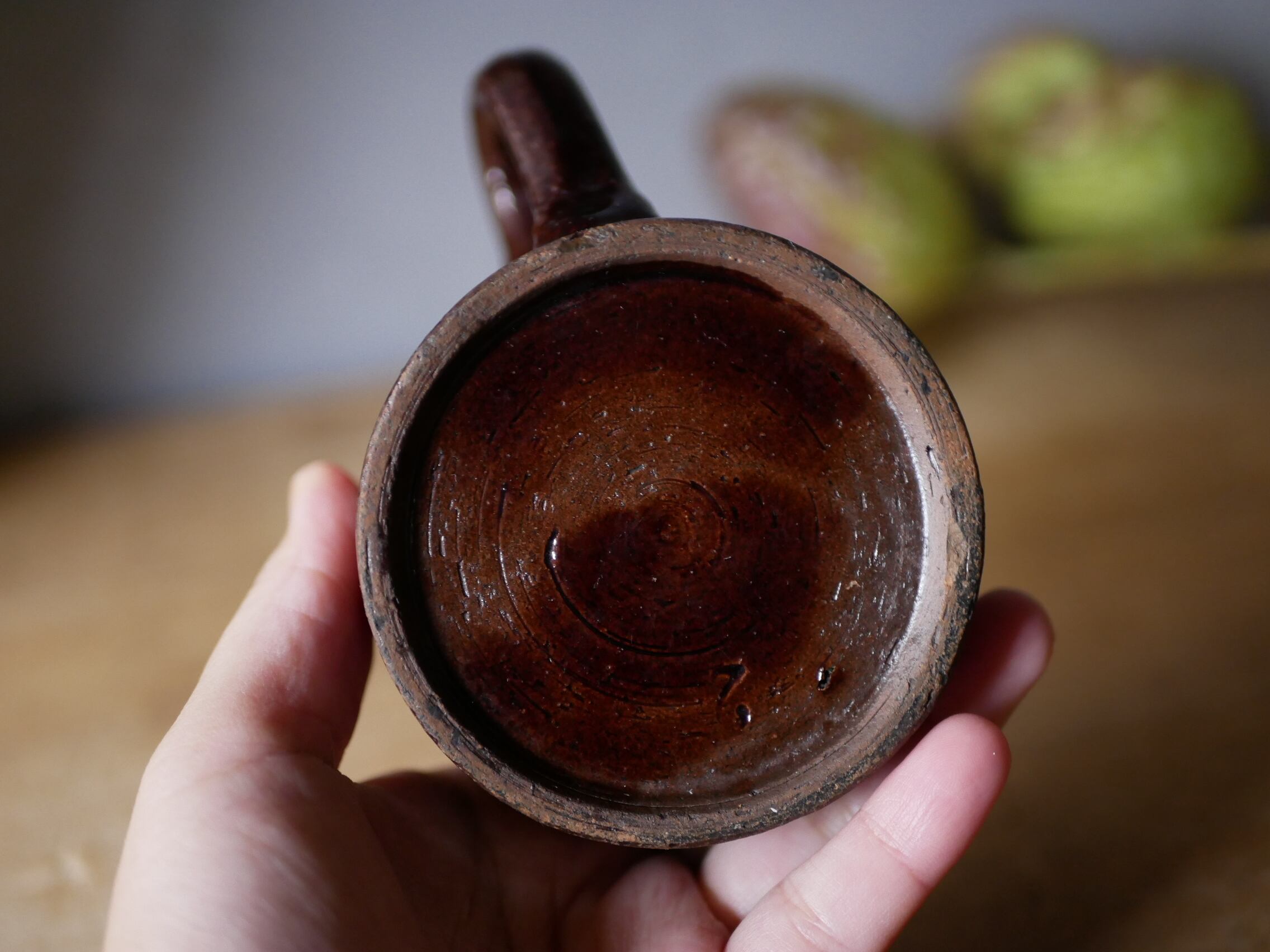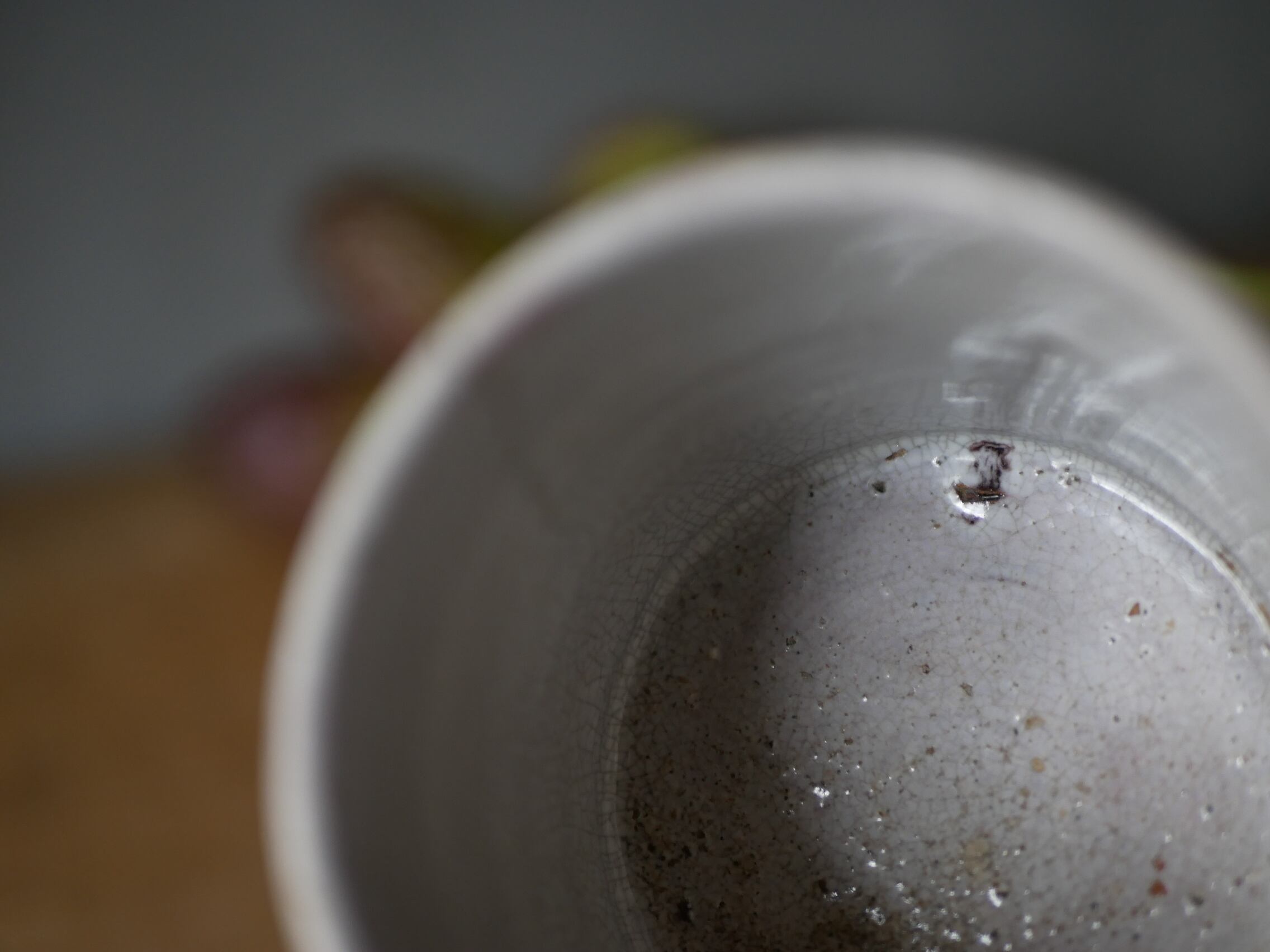 釉薬が美しいですが、取っ手の反対側ヘアラインが入っています。