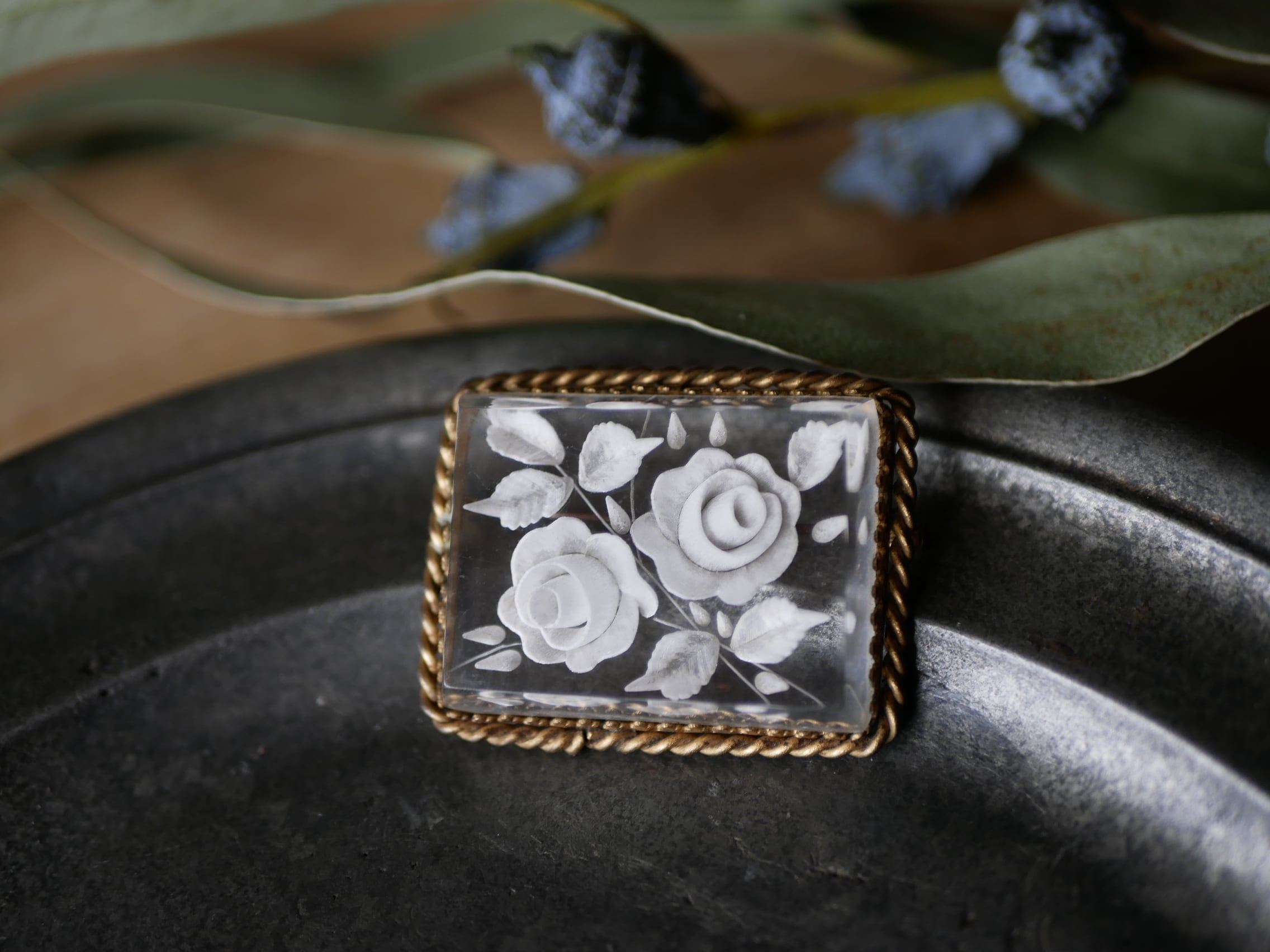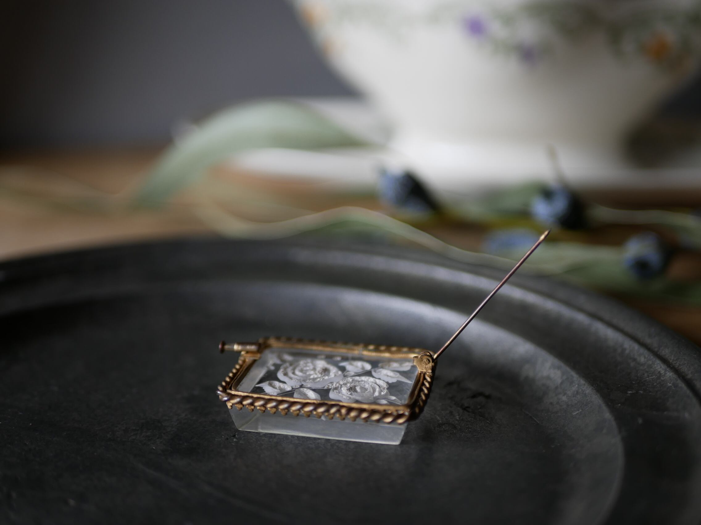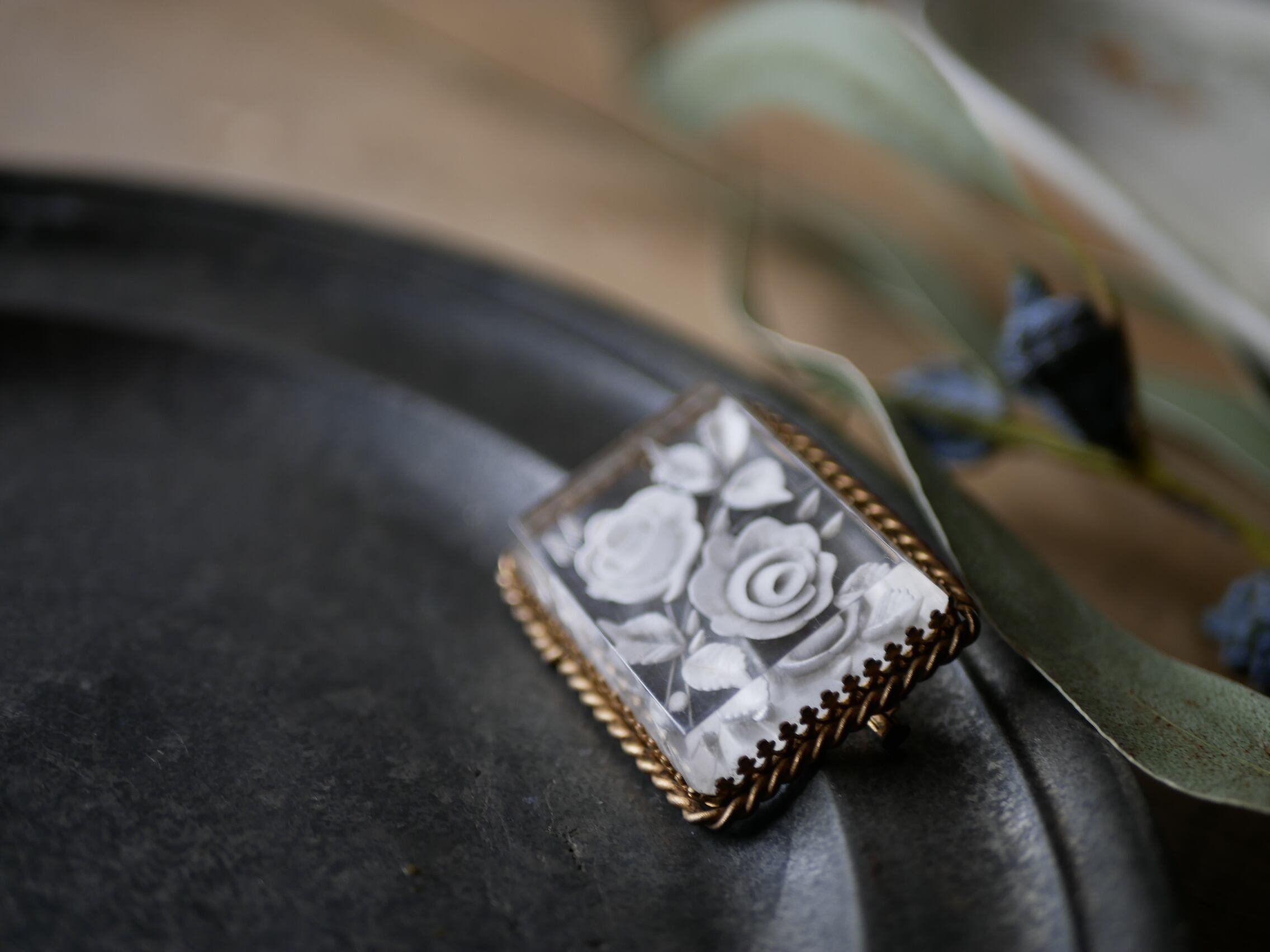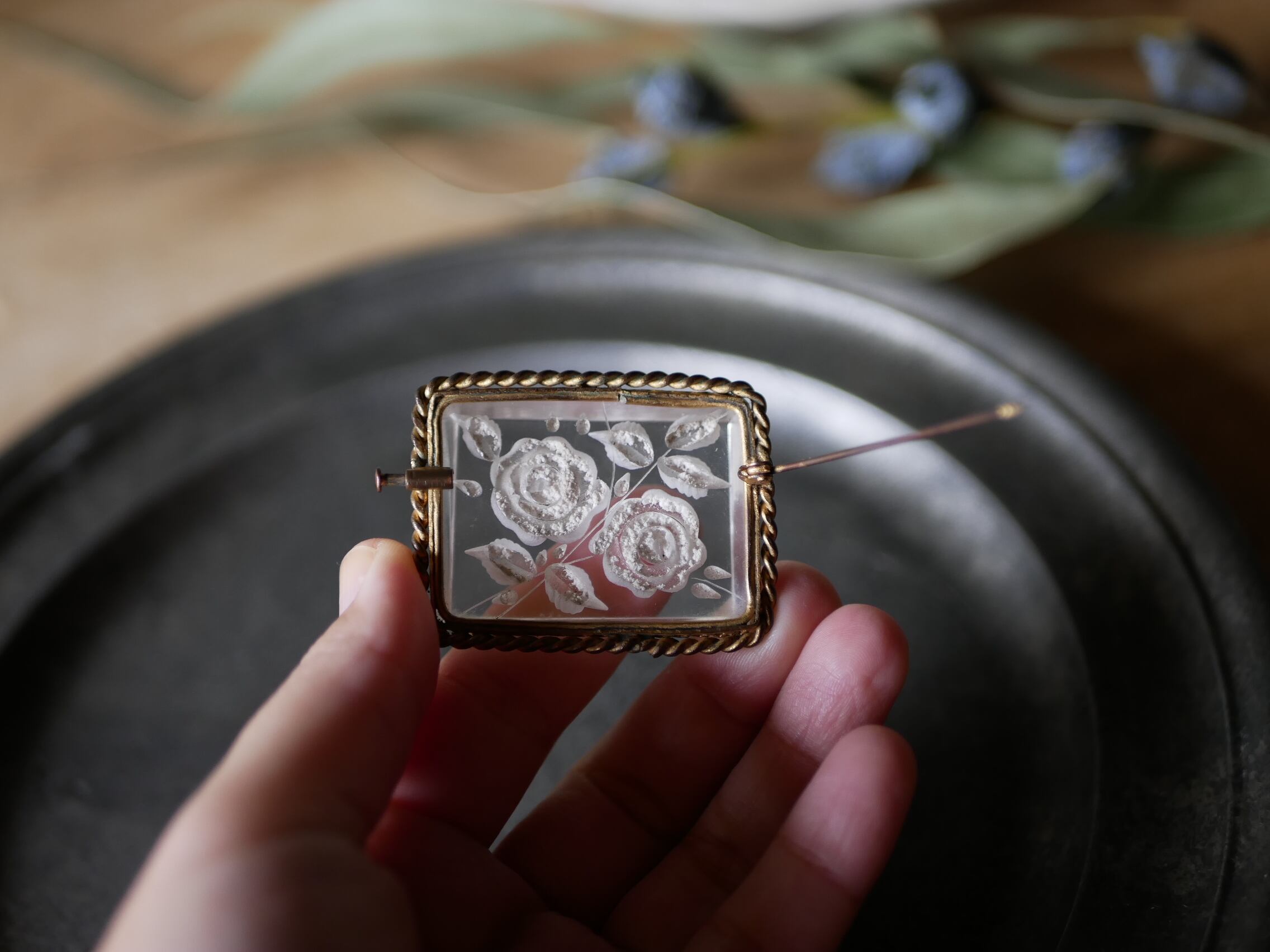 6 ローズのルーサイトブローチ 枠付き フランスヴィンテージ ブロカントのある暮らし