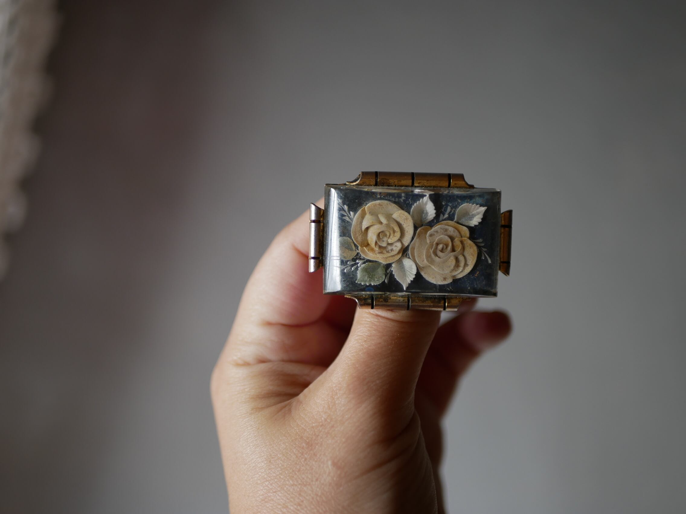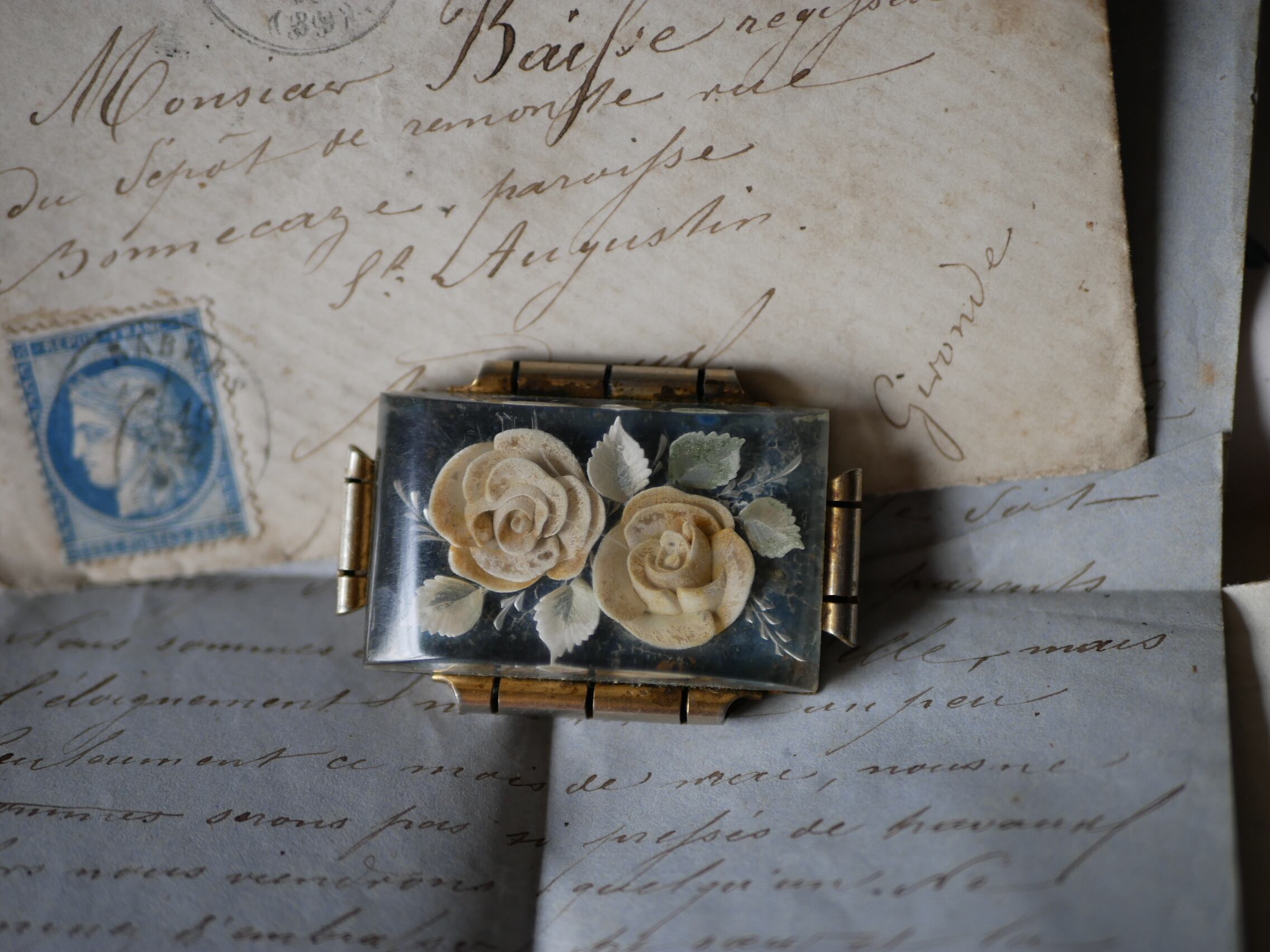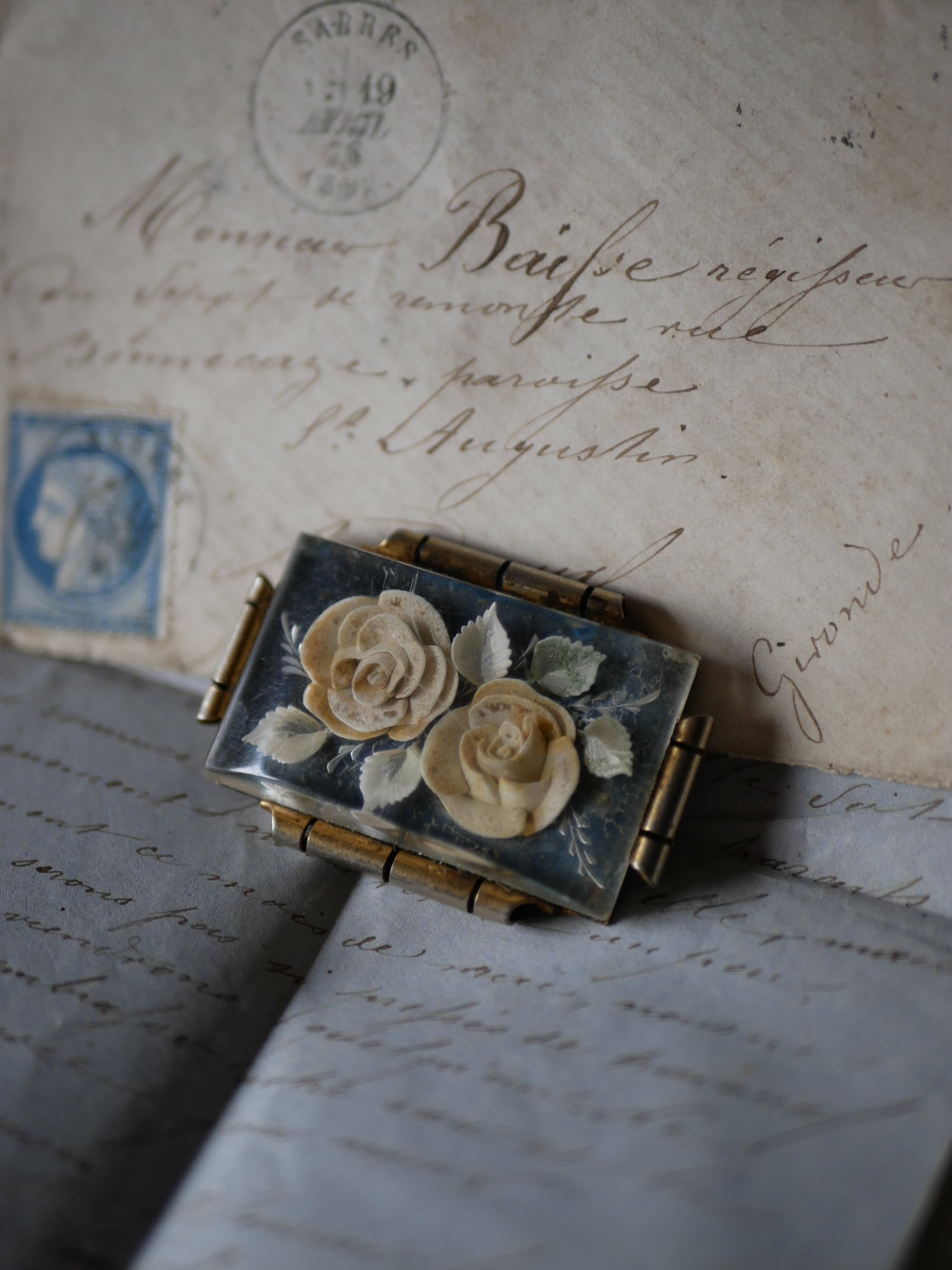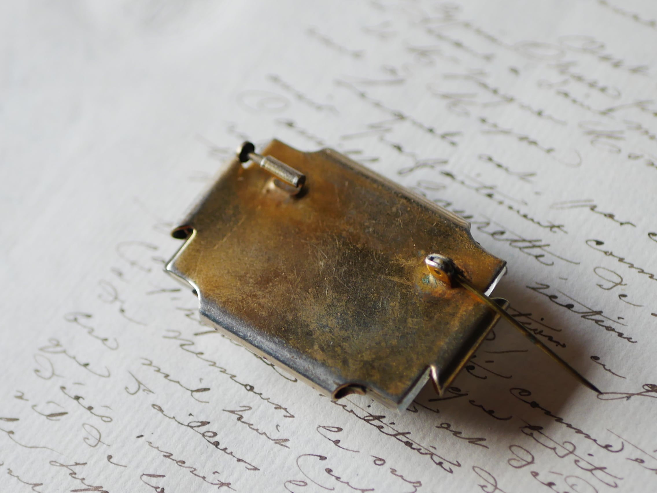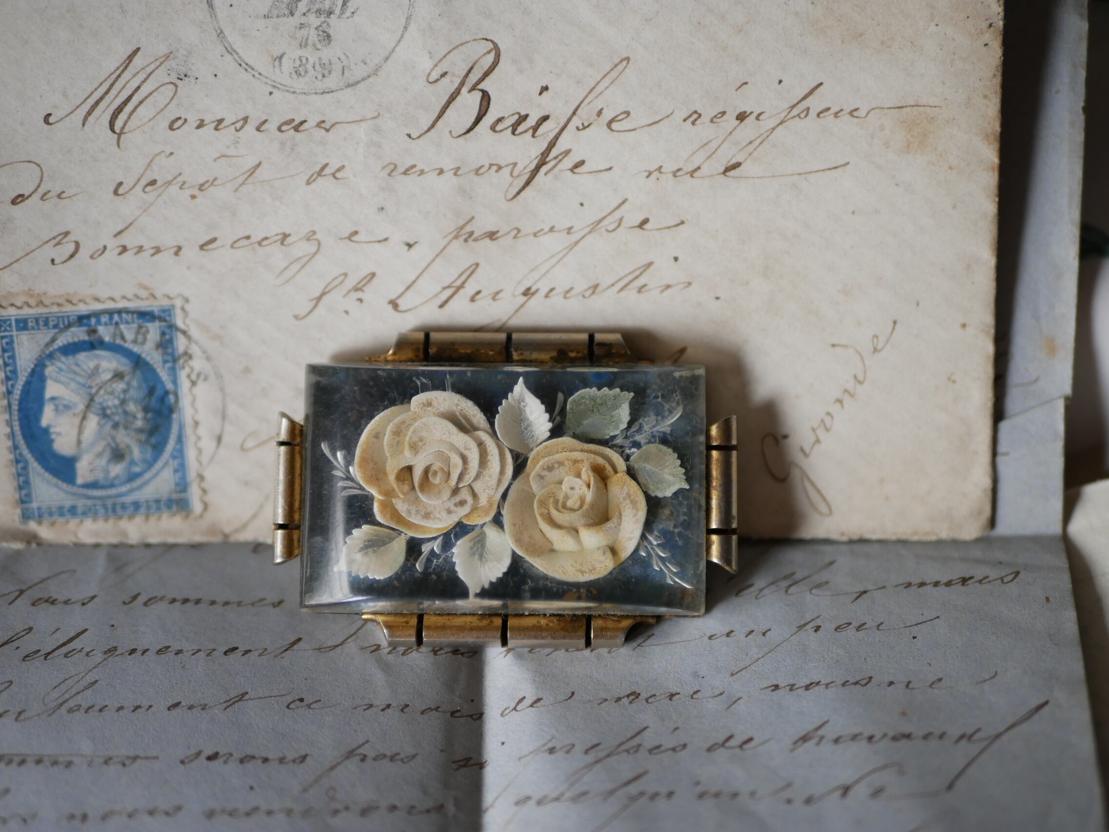 1 ルーサイトブローチ ブルー ローズ 枠付き フランスヴィンテージ ブロカントのある暮らし