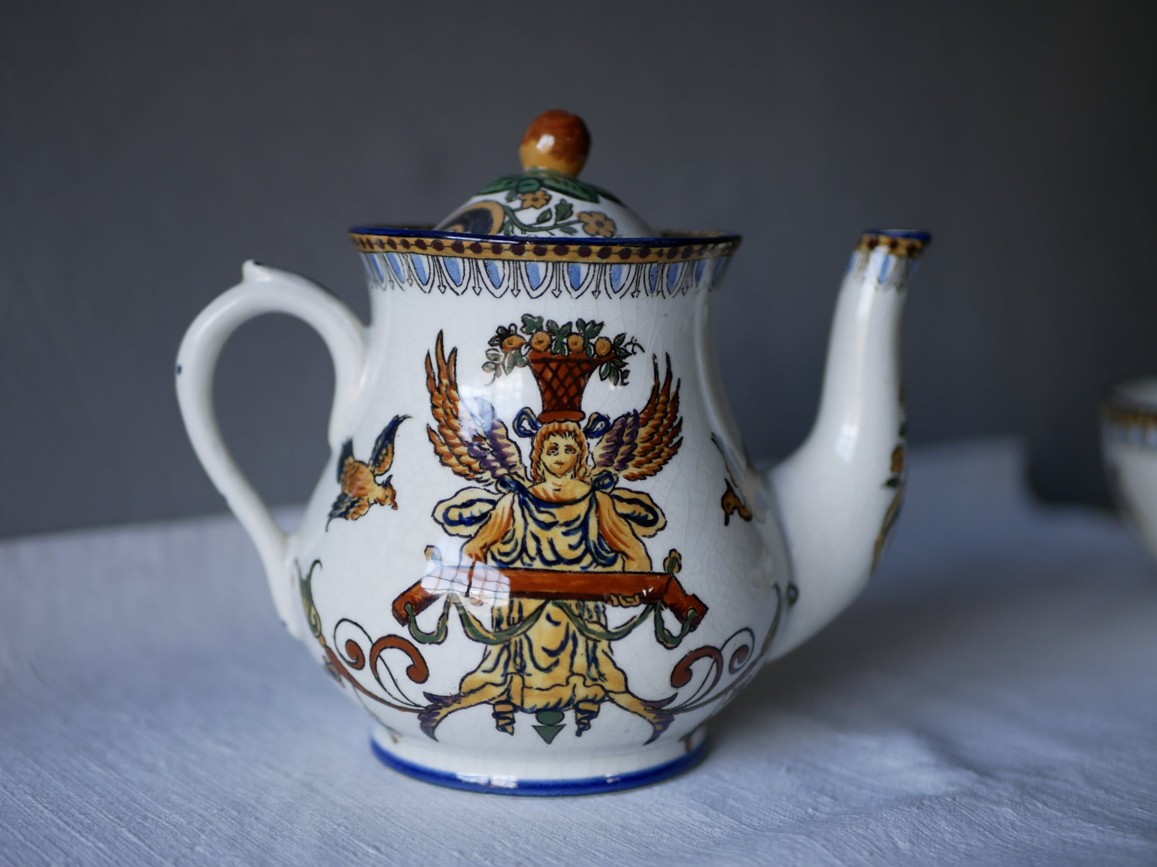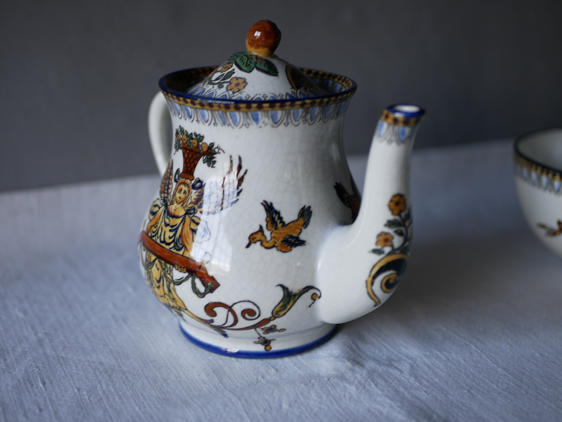 パリ市内で出会った古手のGIENポット&カップ&ソーサーです。