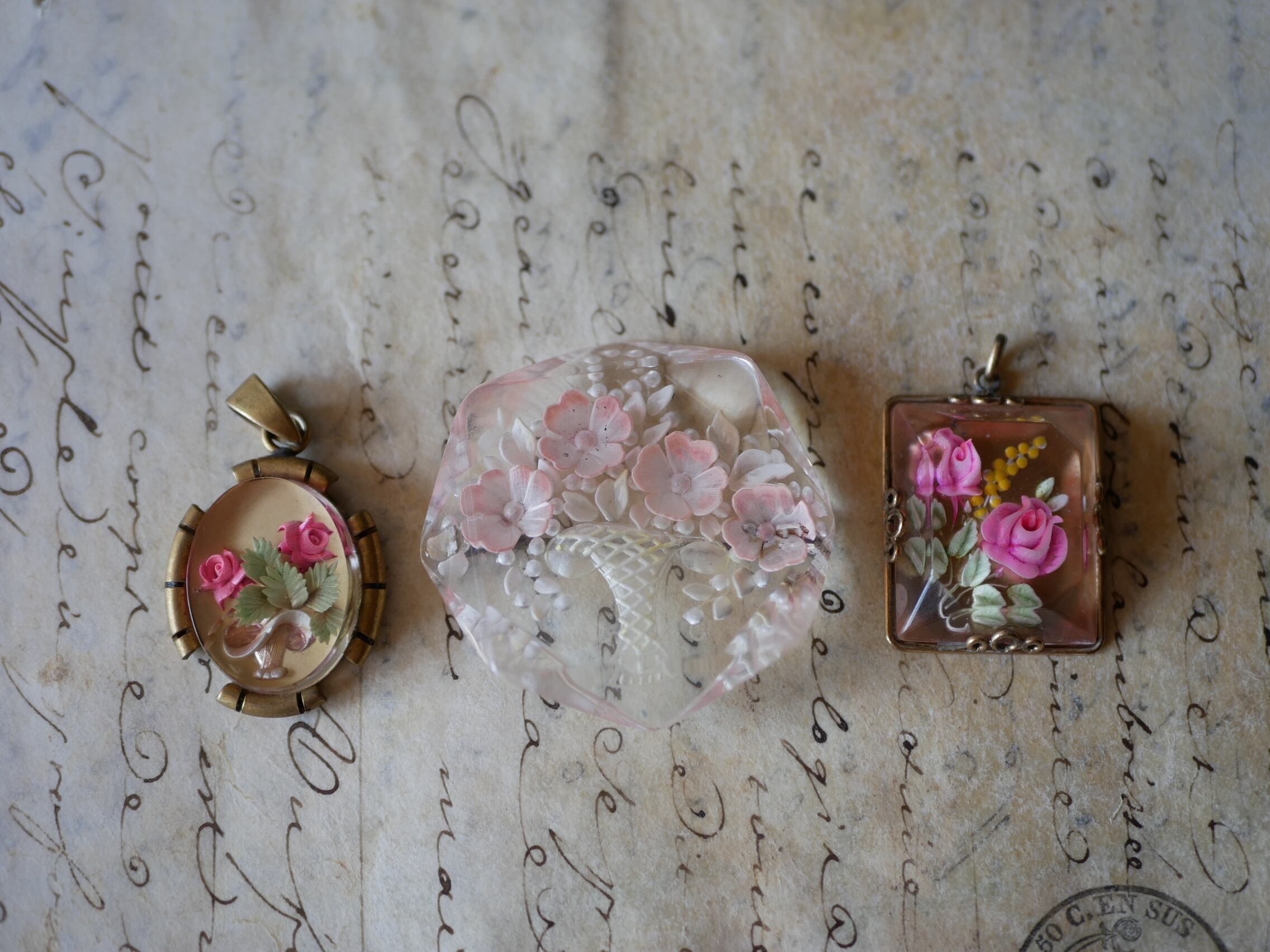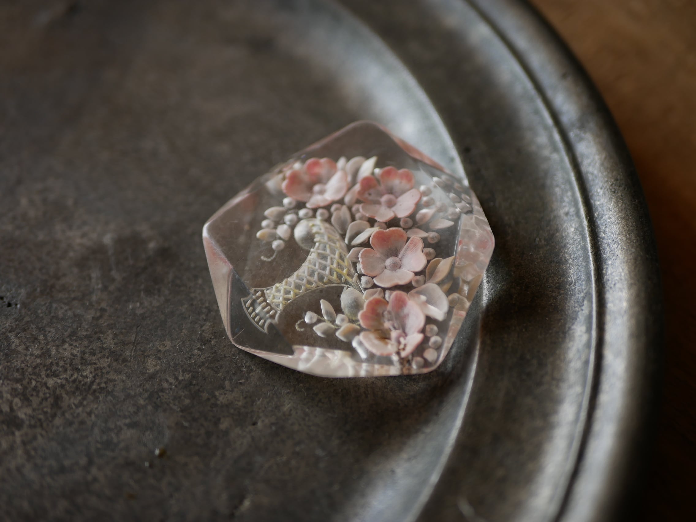 ルーサイト フラワー ブローチ ヴィンテージ フランスアンティーク ブロカントのある暮らし