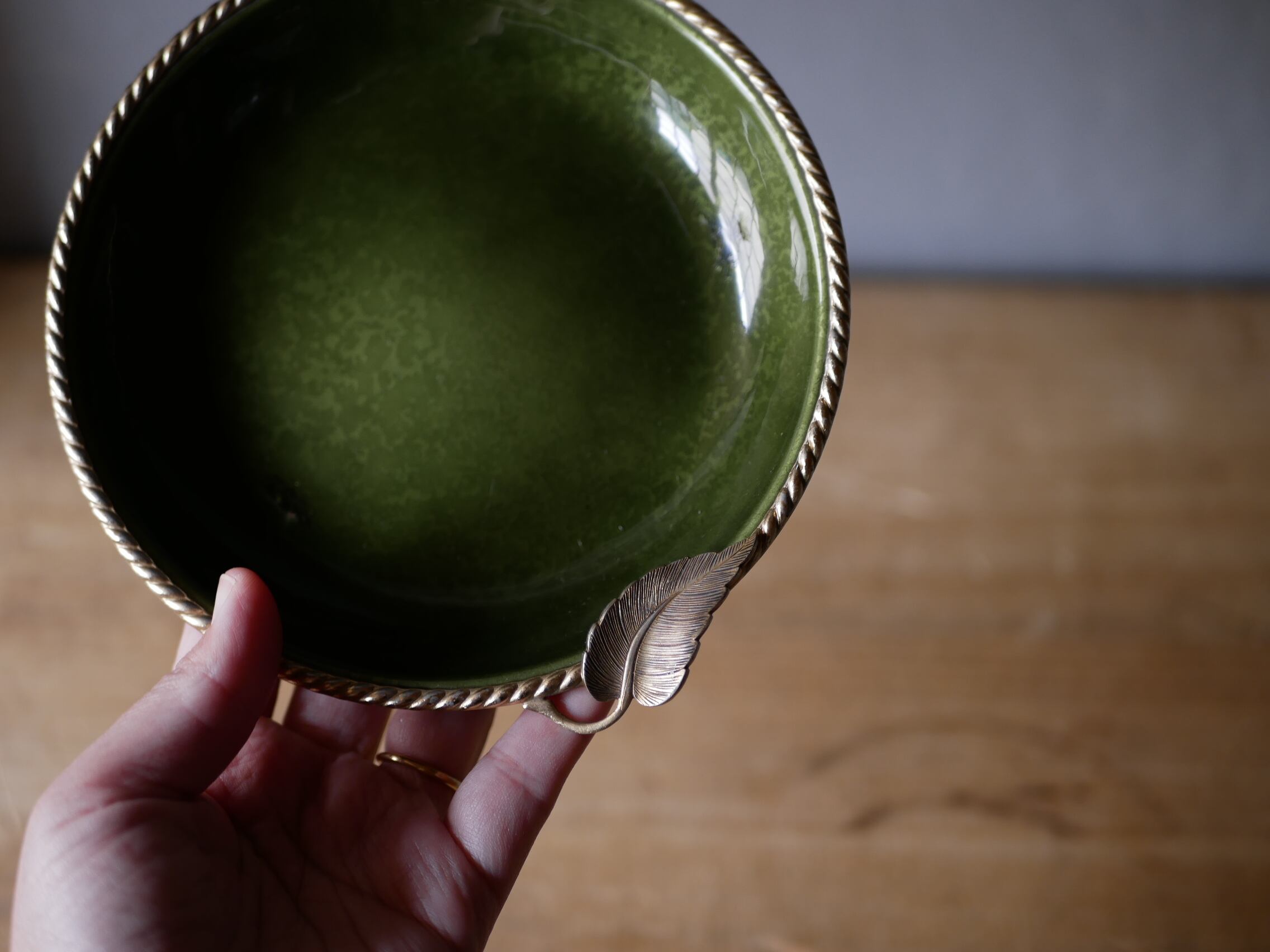 深緑のプレート 葉っぱ フランスアンティーク ブロカントのある暮らし