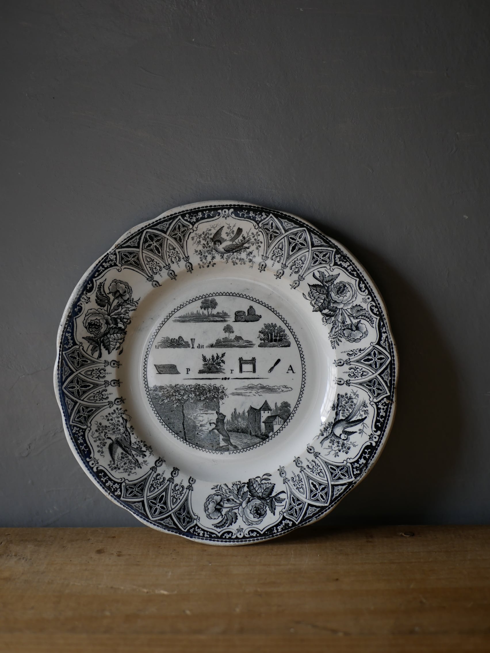 グリザイユ なぞなぞプレート フランスアンティーク ブロカントのある暮らし