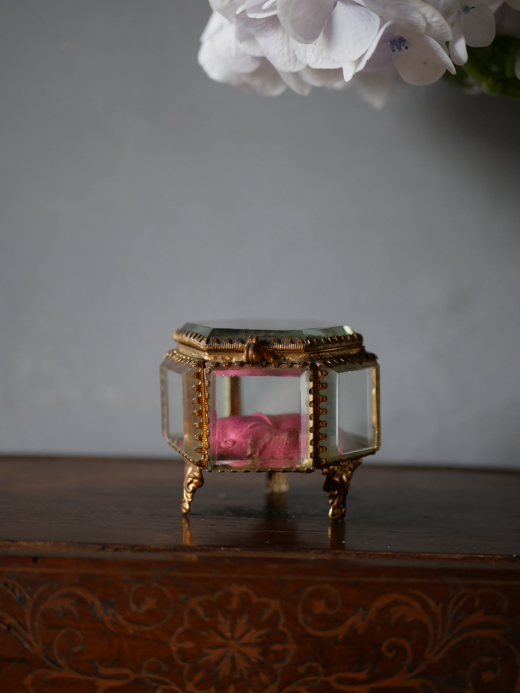 六角形 ルージュ オルモルガラス ジュエリーボックス フランスアンティーク アンティークのある暮らし