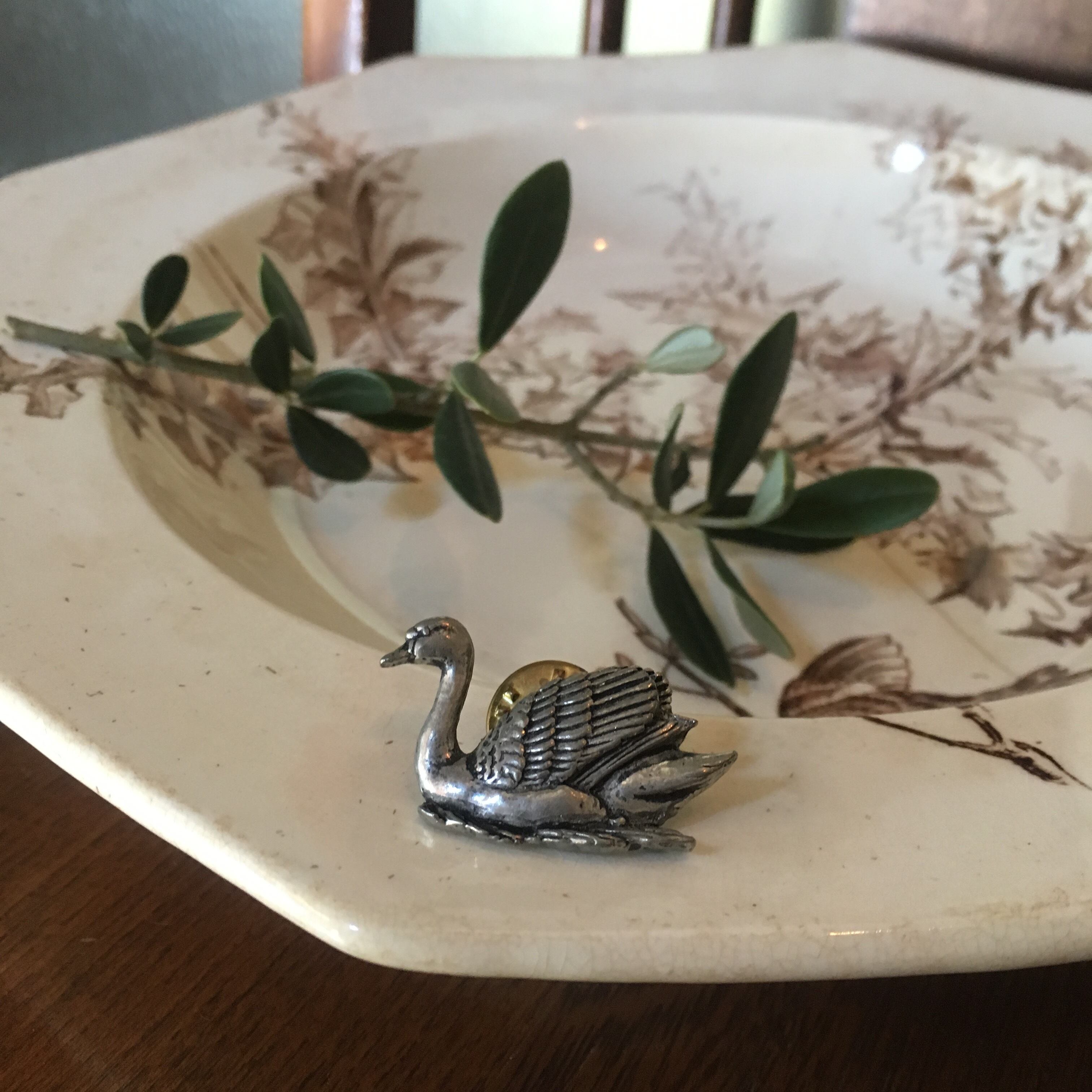 イギリス ピンブローチ スワン