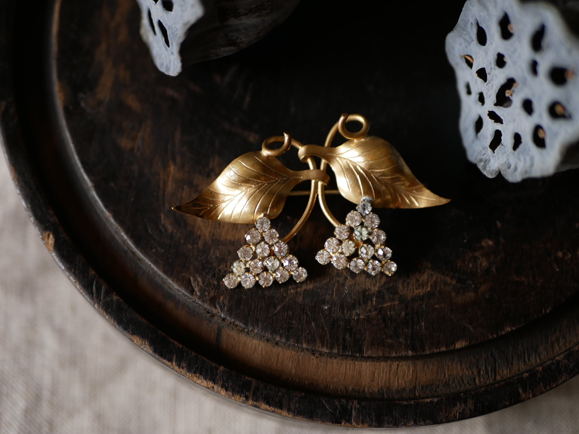 動きのあるゴールドの葉にラインストーンたっぷりの実が華やかです。