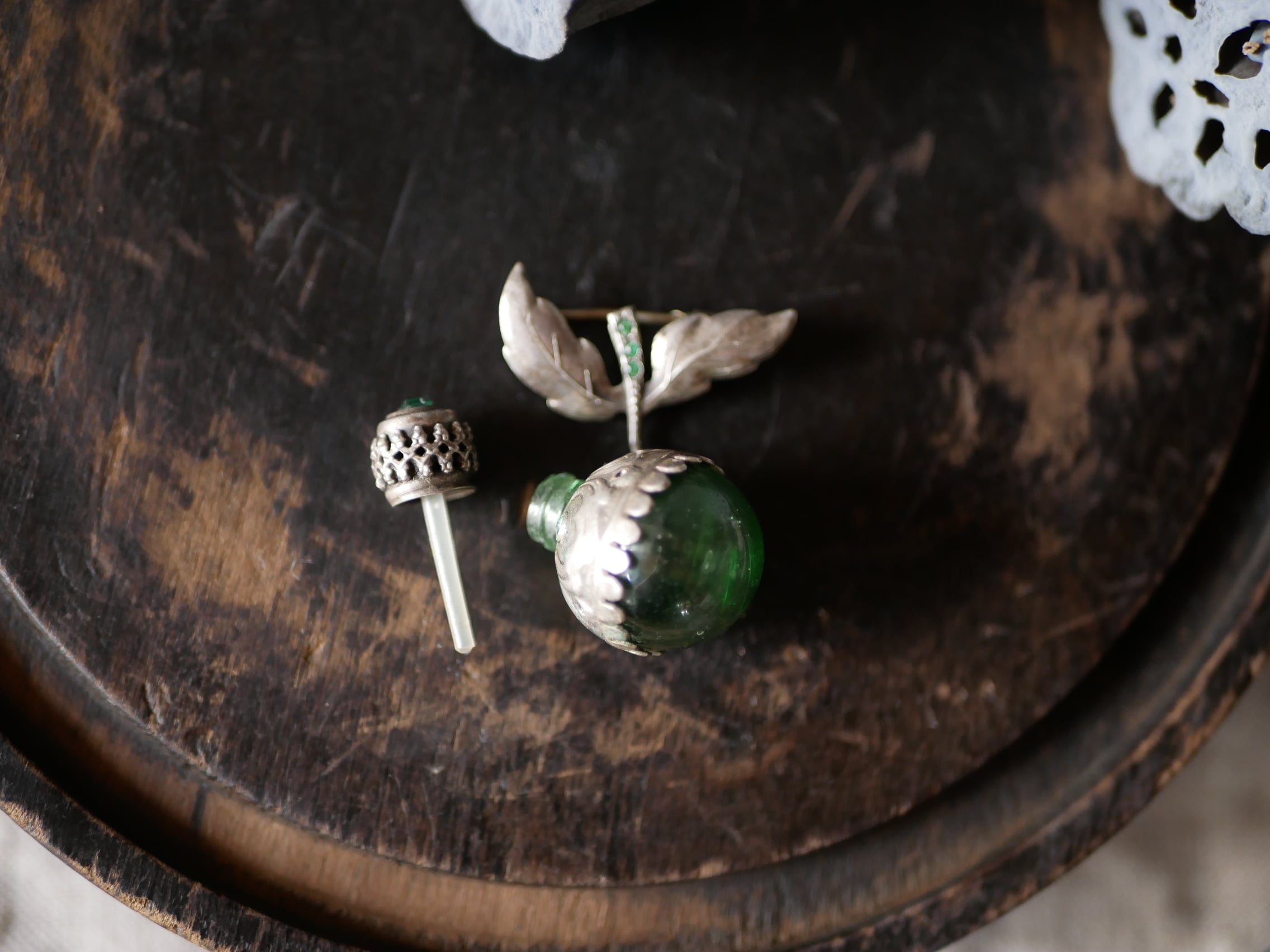 レア 香水瓶付きのブローチ グリーン フランスアンティーク アンティークのある暮らし
