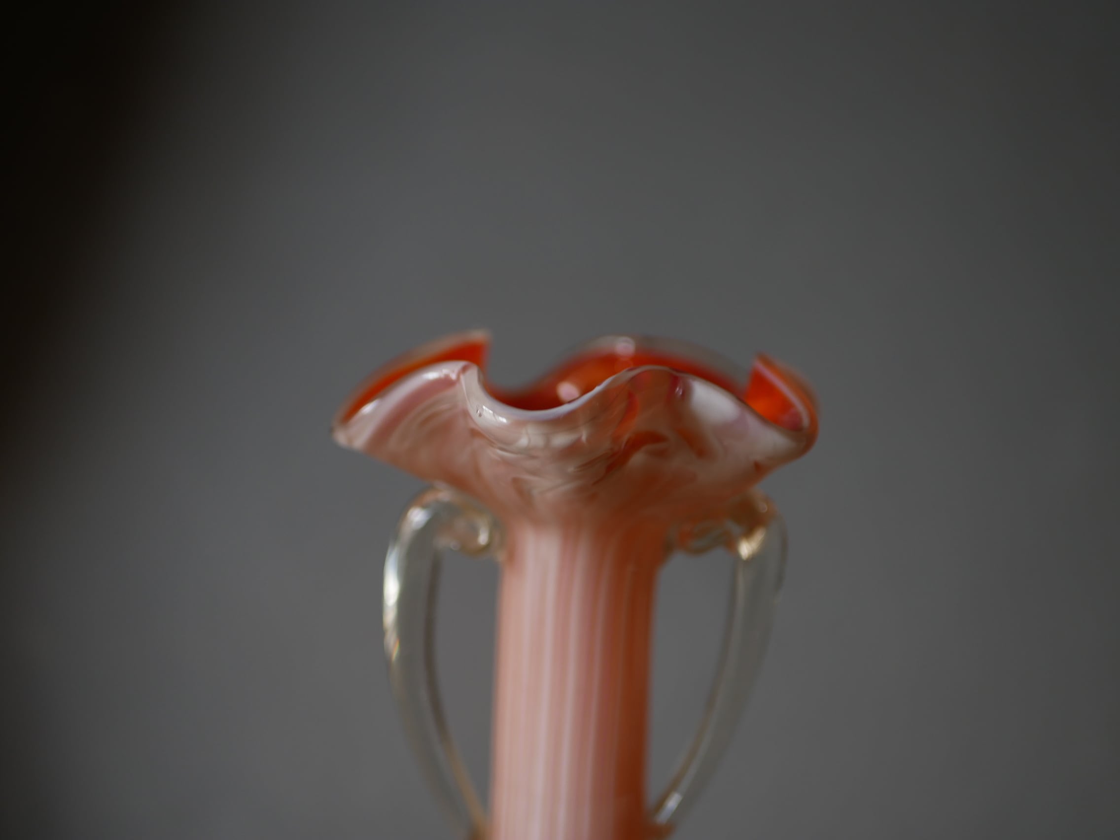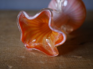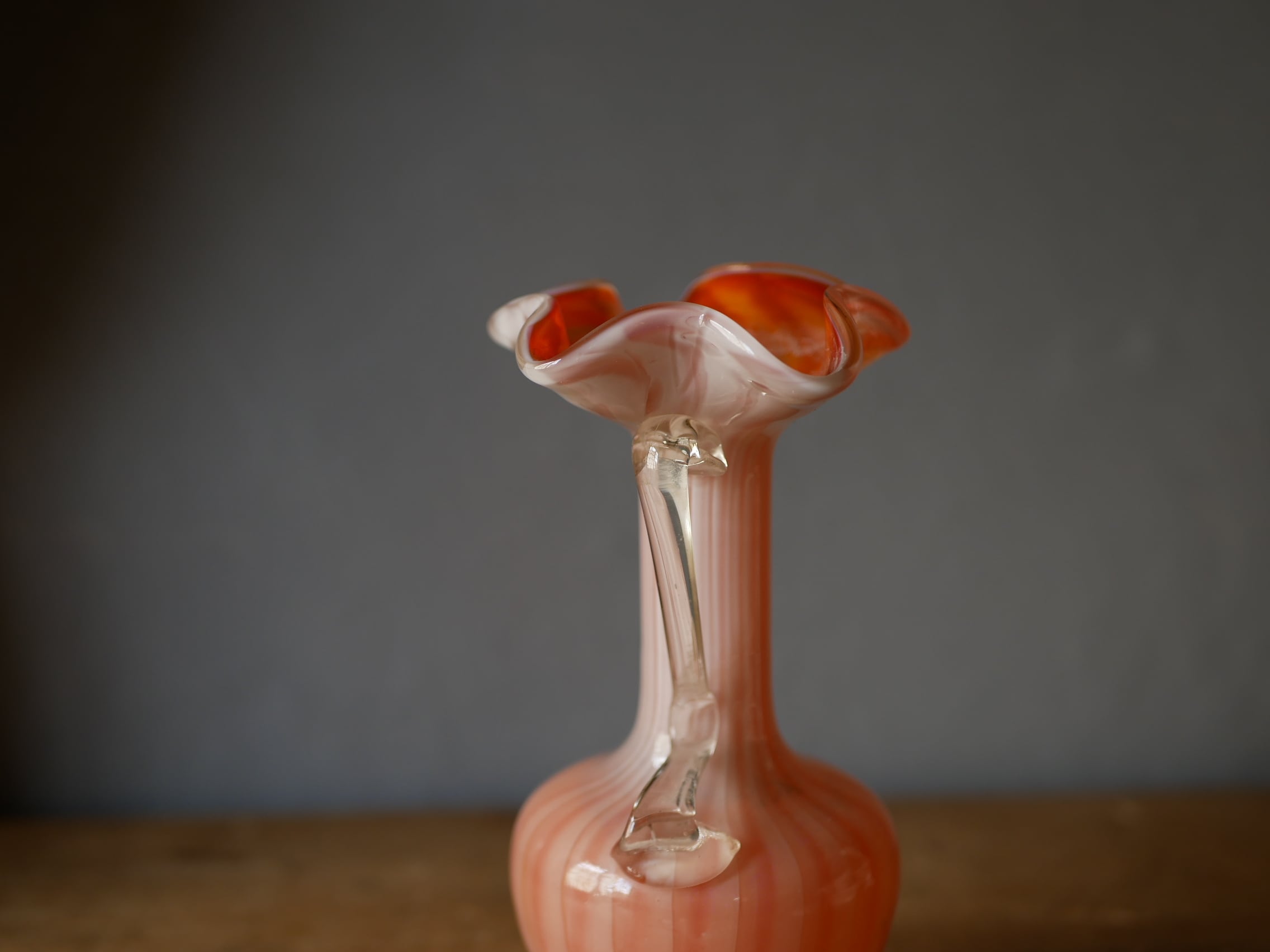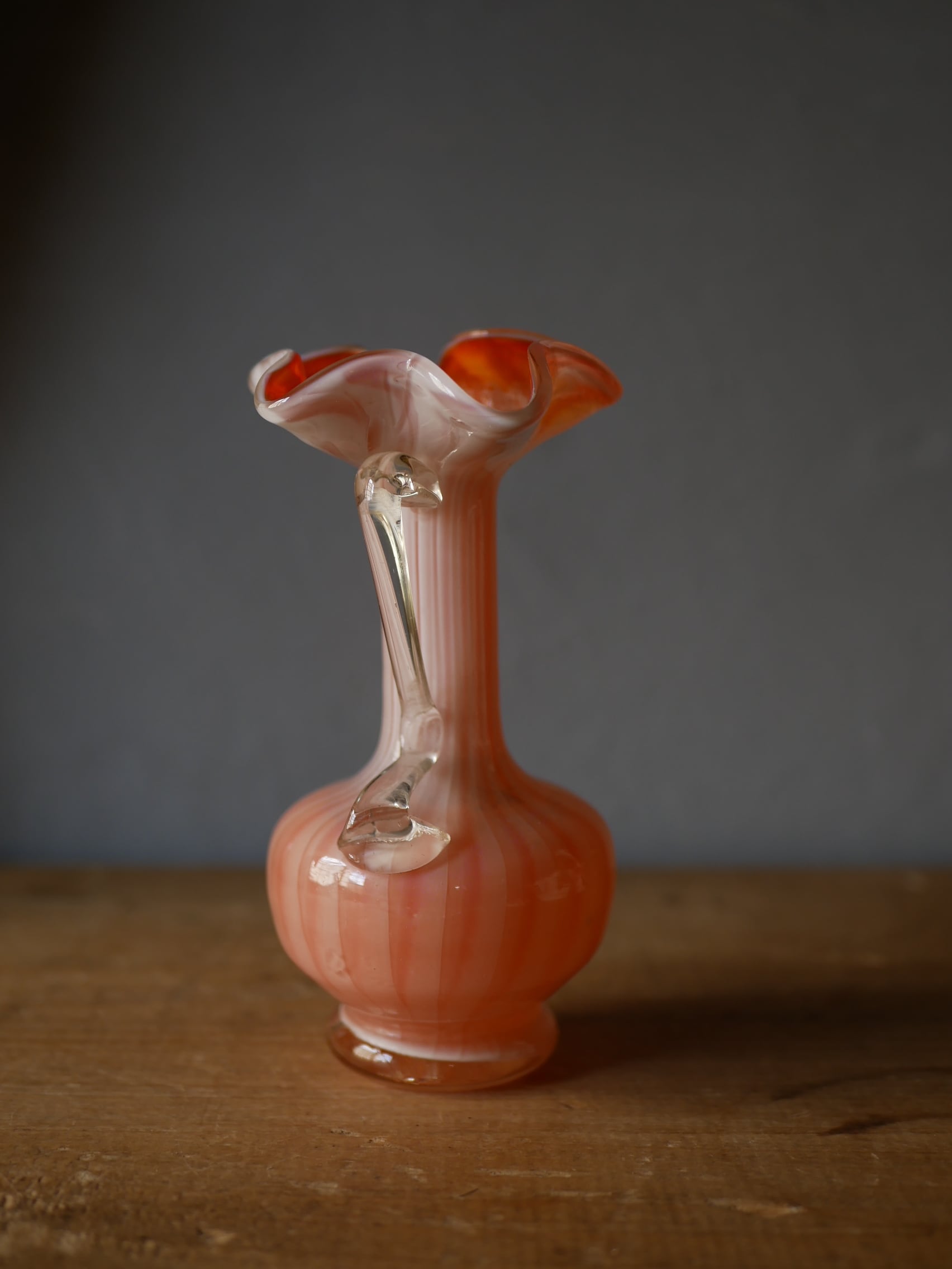 中はオレンジ、外はサーモンピンクのストライプがなんとも可愛いフラワーベースに出会いました。