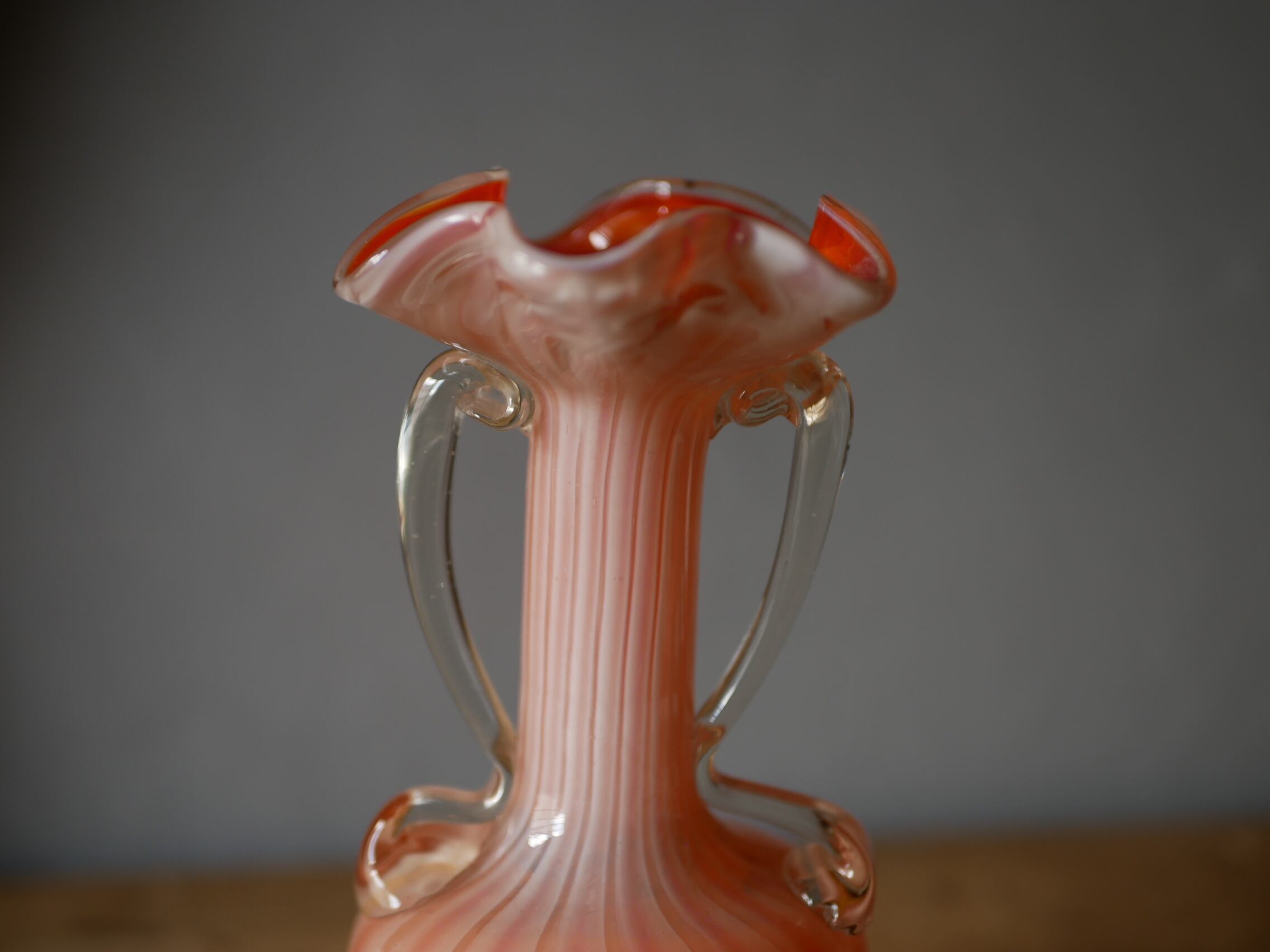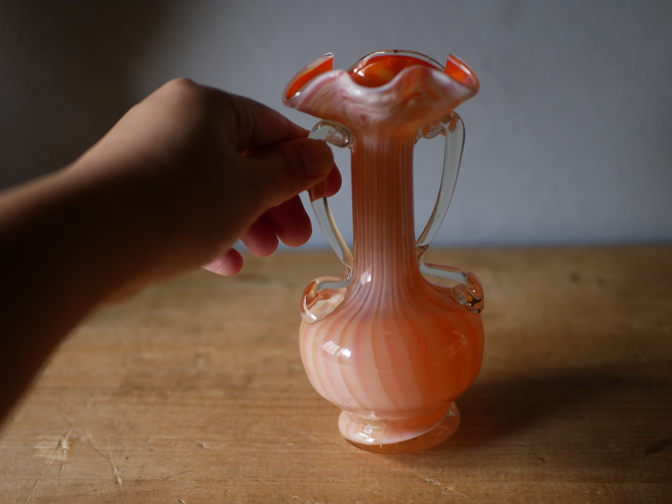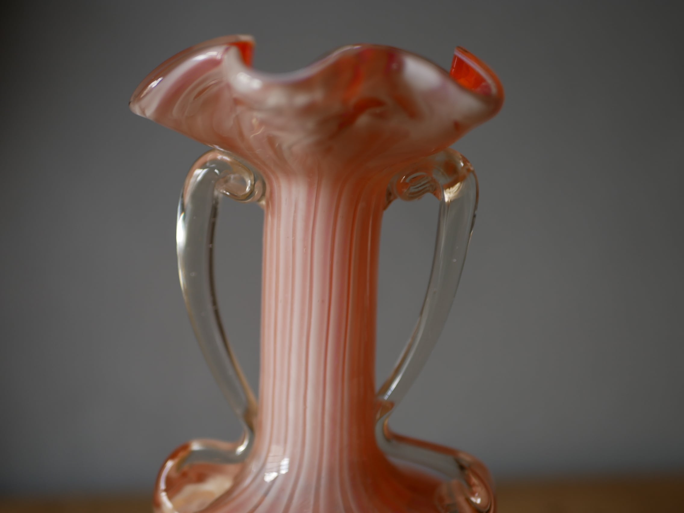 中はオレンジ、外はサーモンピンクのストライプがなんとも可愛いフラワーベースに出会いました。