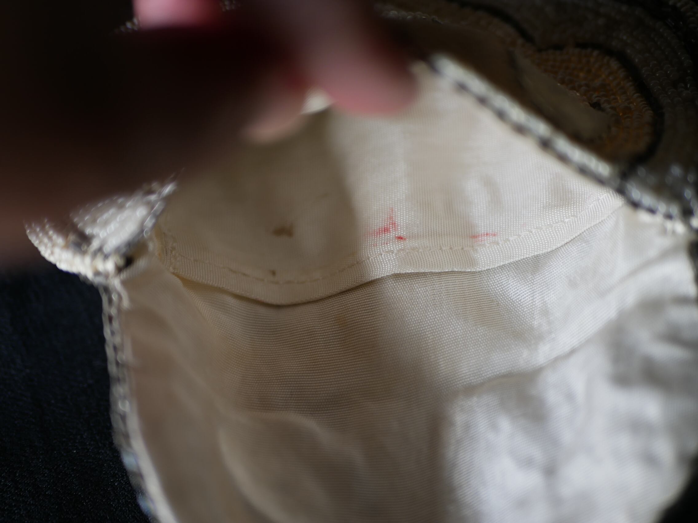 裏にベルトが付いているのは、ダンスを踊る際に指をくぐらせ、男性の肩にバッグと手を置けるからだとマダムに教わりました。