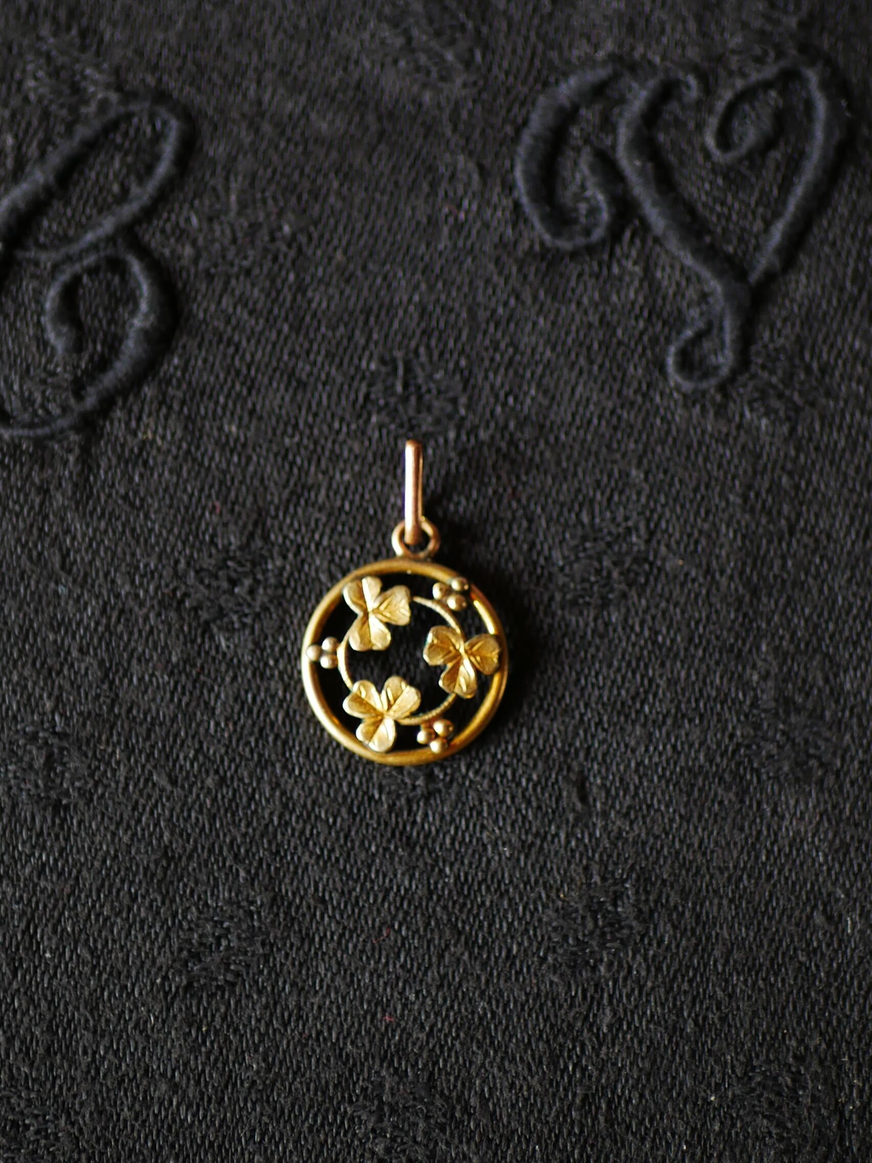 三つ葉のネックレストップ ペンダントトップ ゴールドプレート フランスアンティーク