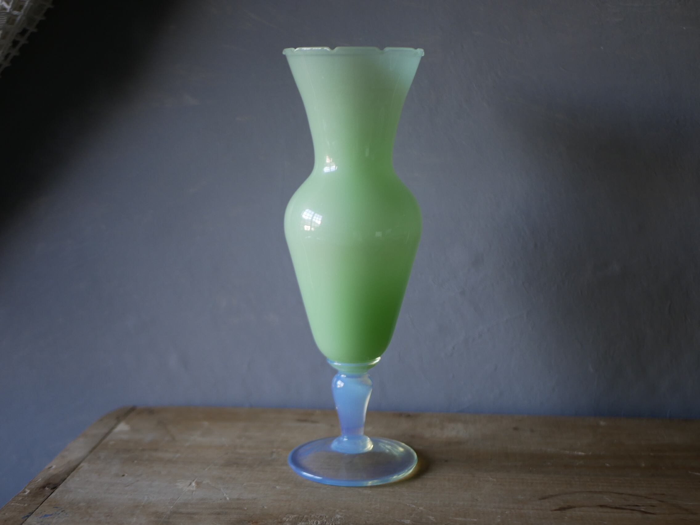ミントグリーンのオパリンガラス クリスタルガラス フランスアンティーク ブロカントのある暮らし