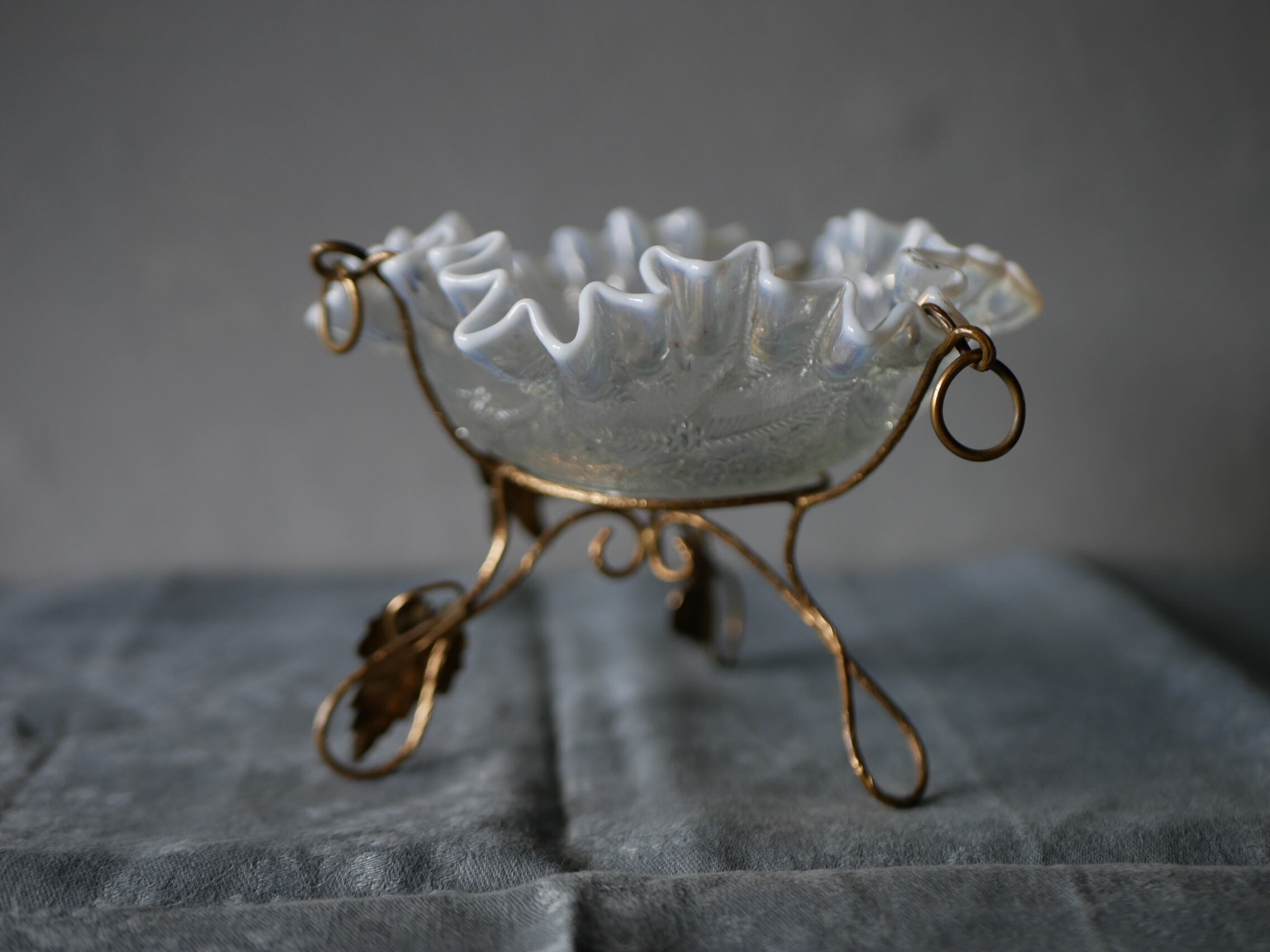 フリルのオパリンガラス アンティークスタンド フランスアンティーク アンティークのある生活