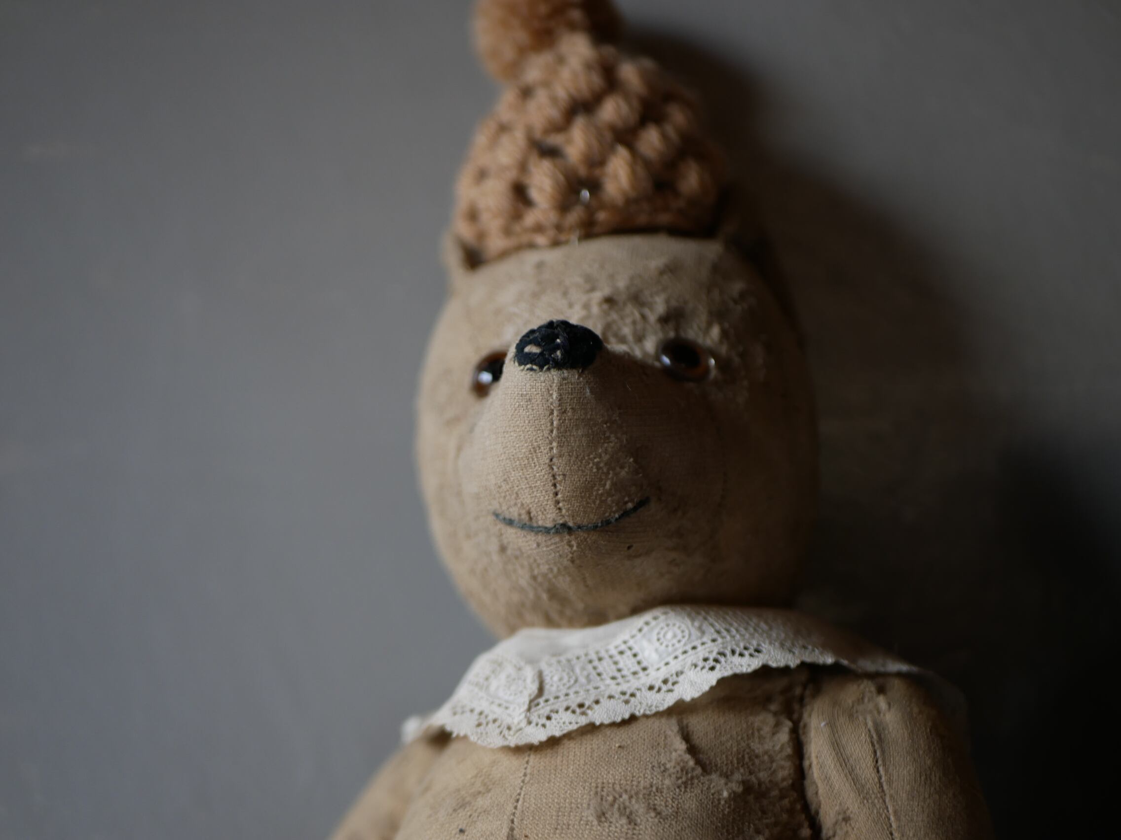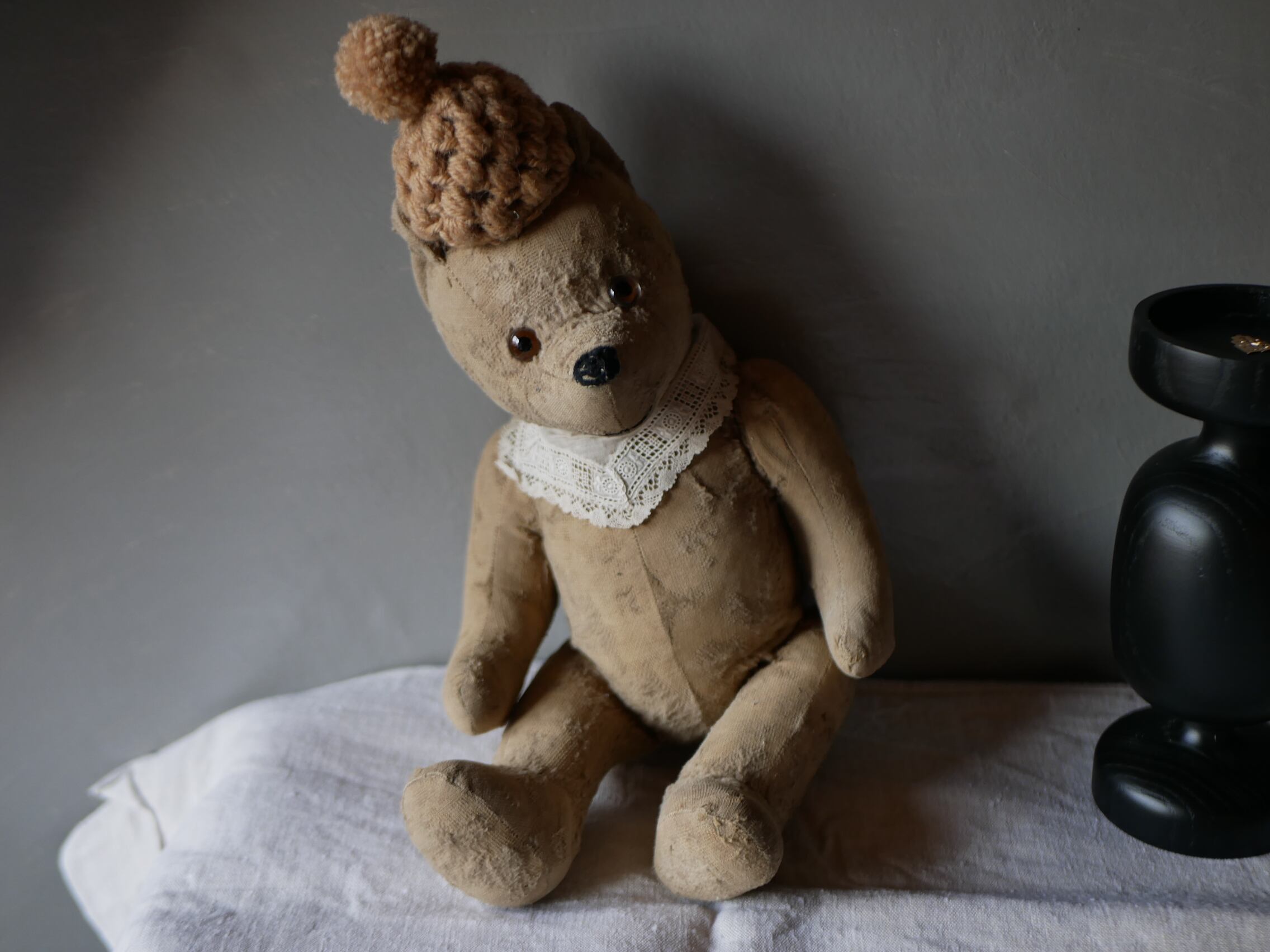 ニット帽をかぶったテディベア フランスアンティーク ブロカントのある暮らし